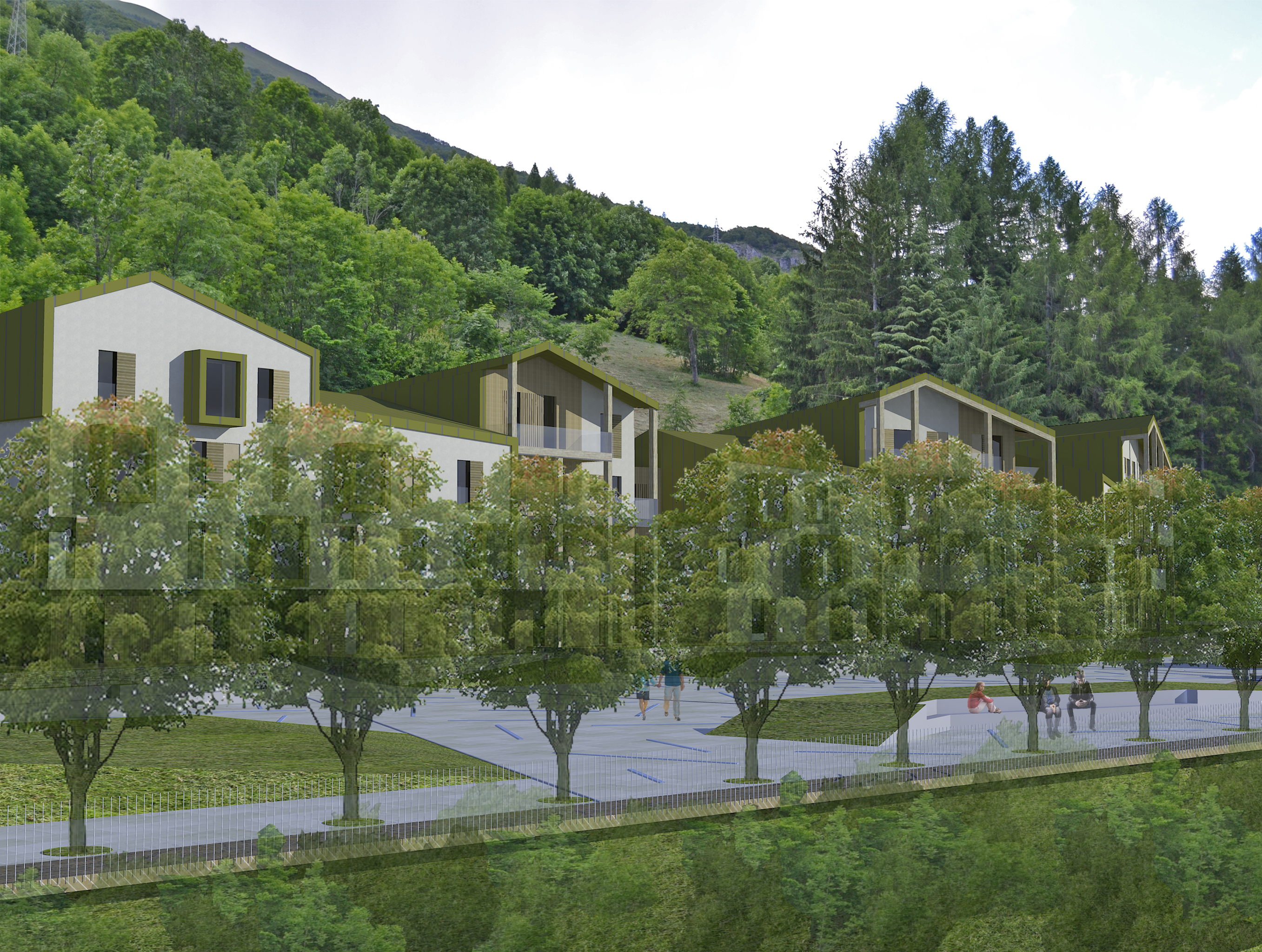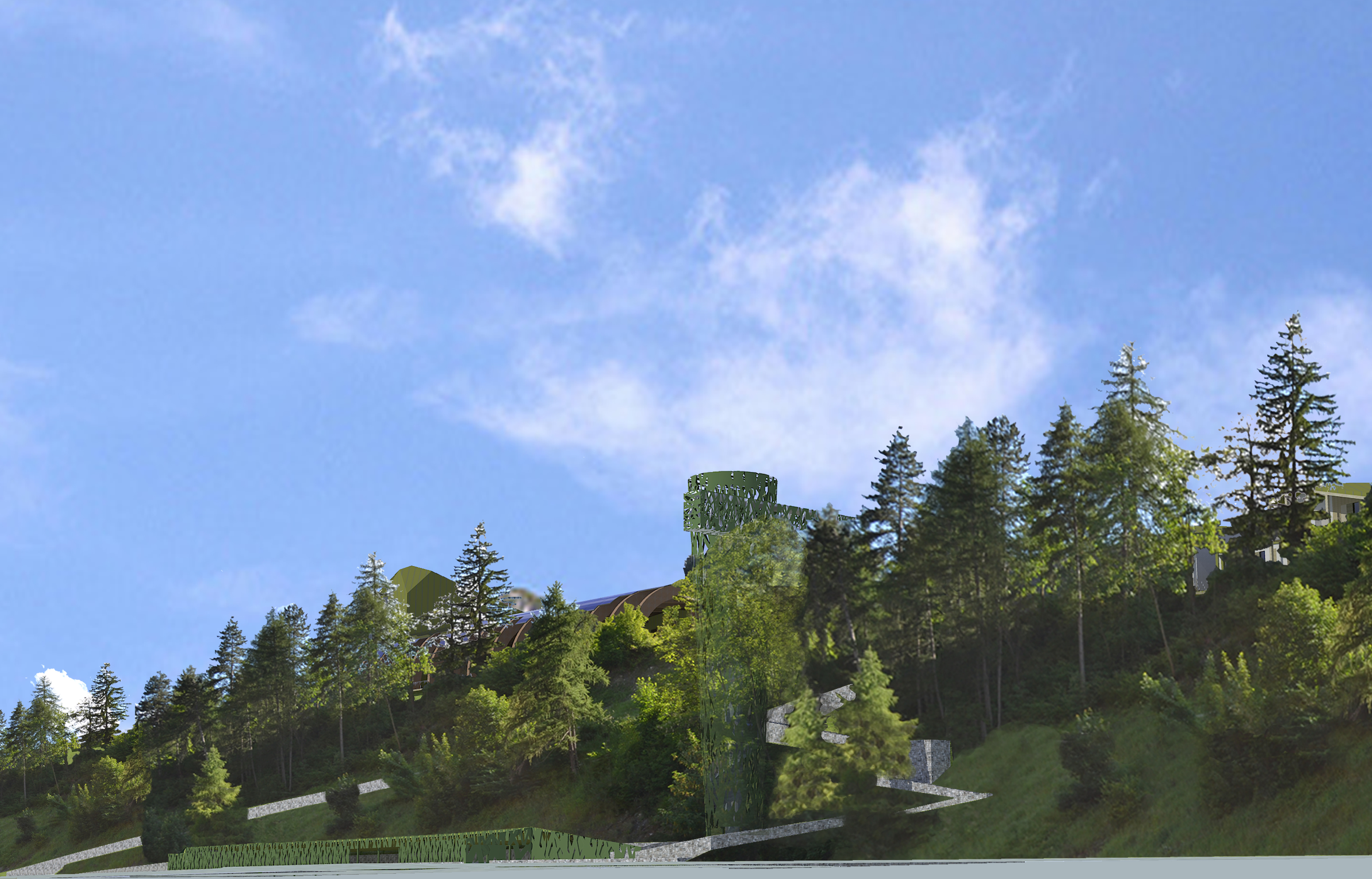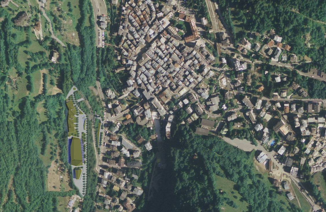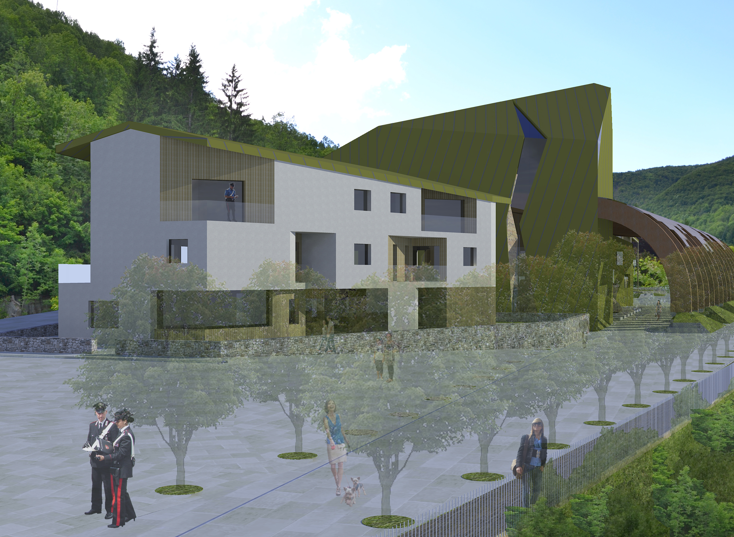 Il terreno infine non è trattato come semplice sostegno, ma diventa materiale da costruzione, per proteggere, separare, unire ed innalzare il nuovo centro con quello storico più a valle.
