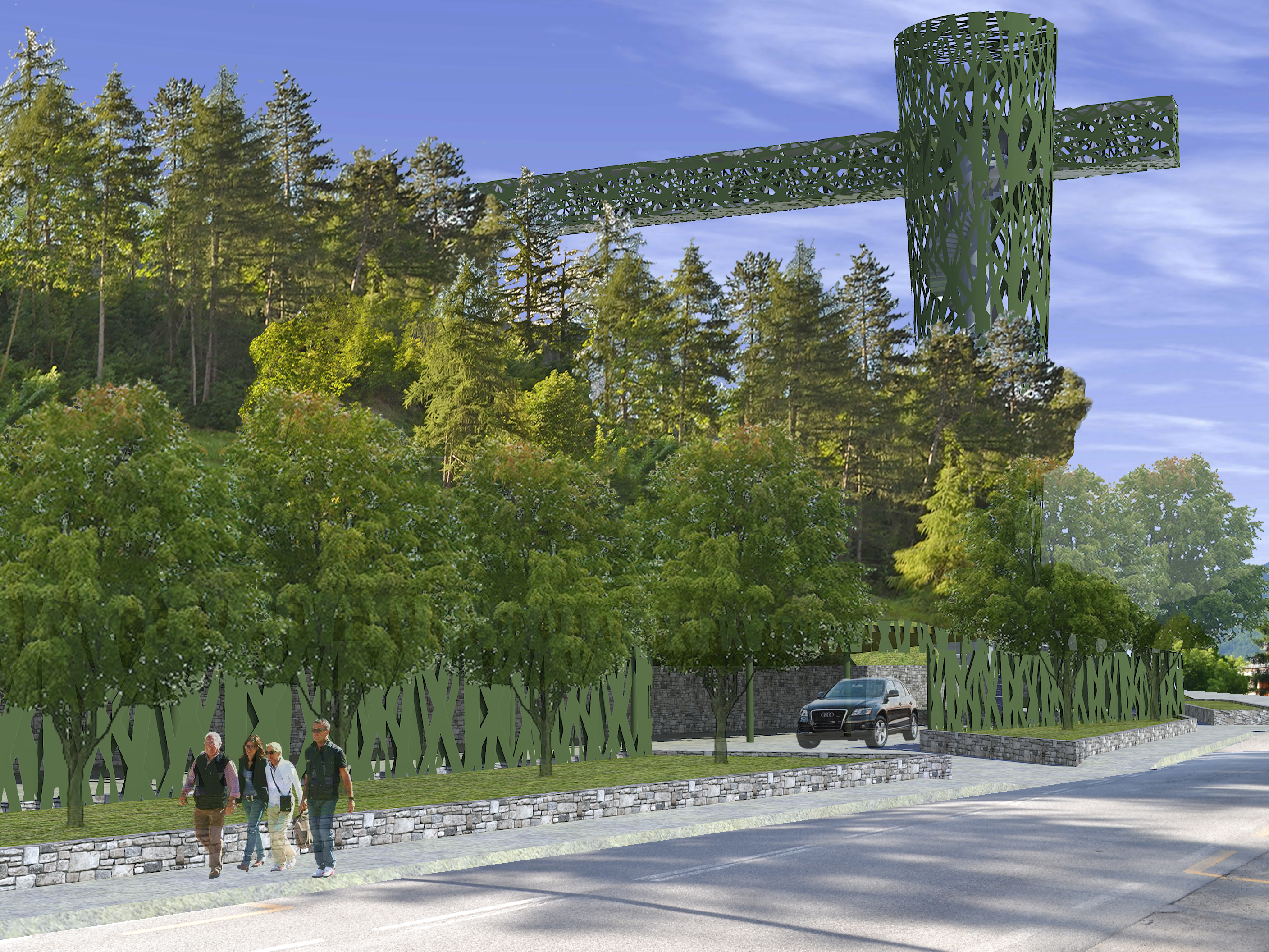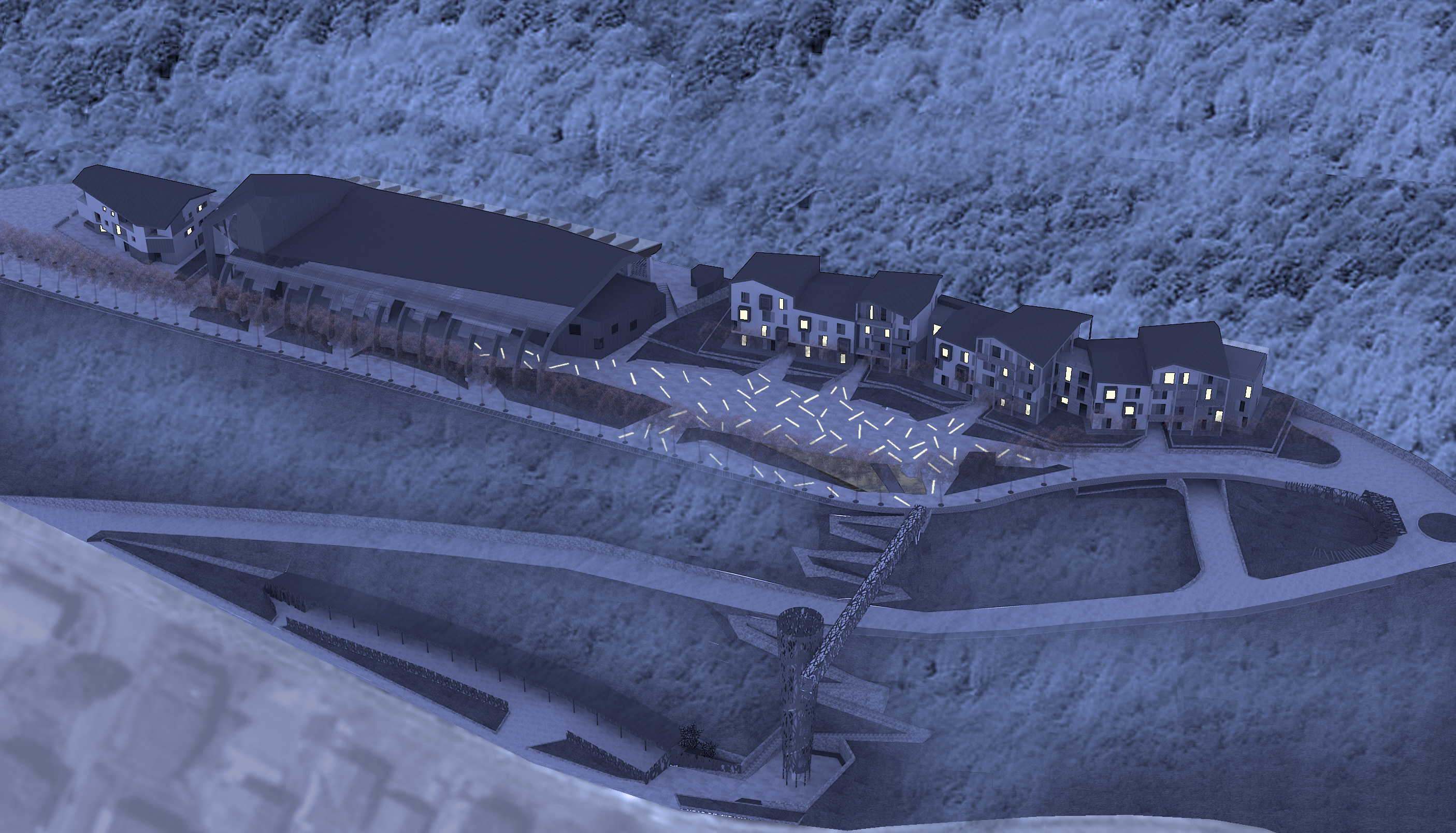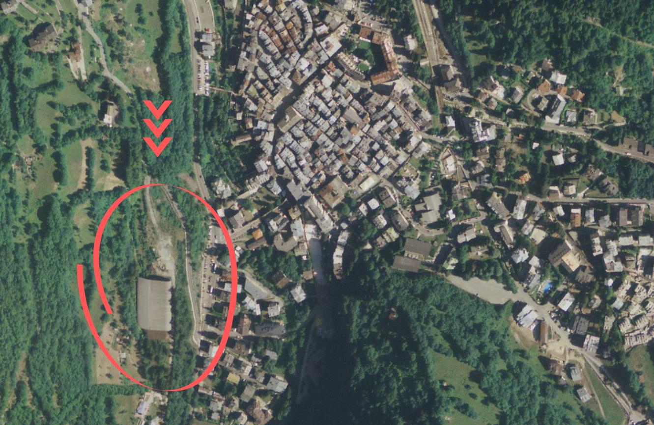 Il terreno infine non è trattato come semplice sostegno, ma diventa materiale da costruzione, per proteggere, separare, unire ed innalzare il nuovo centro con quello storico più a valle.