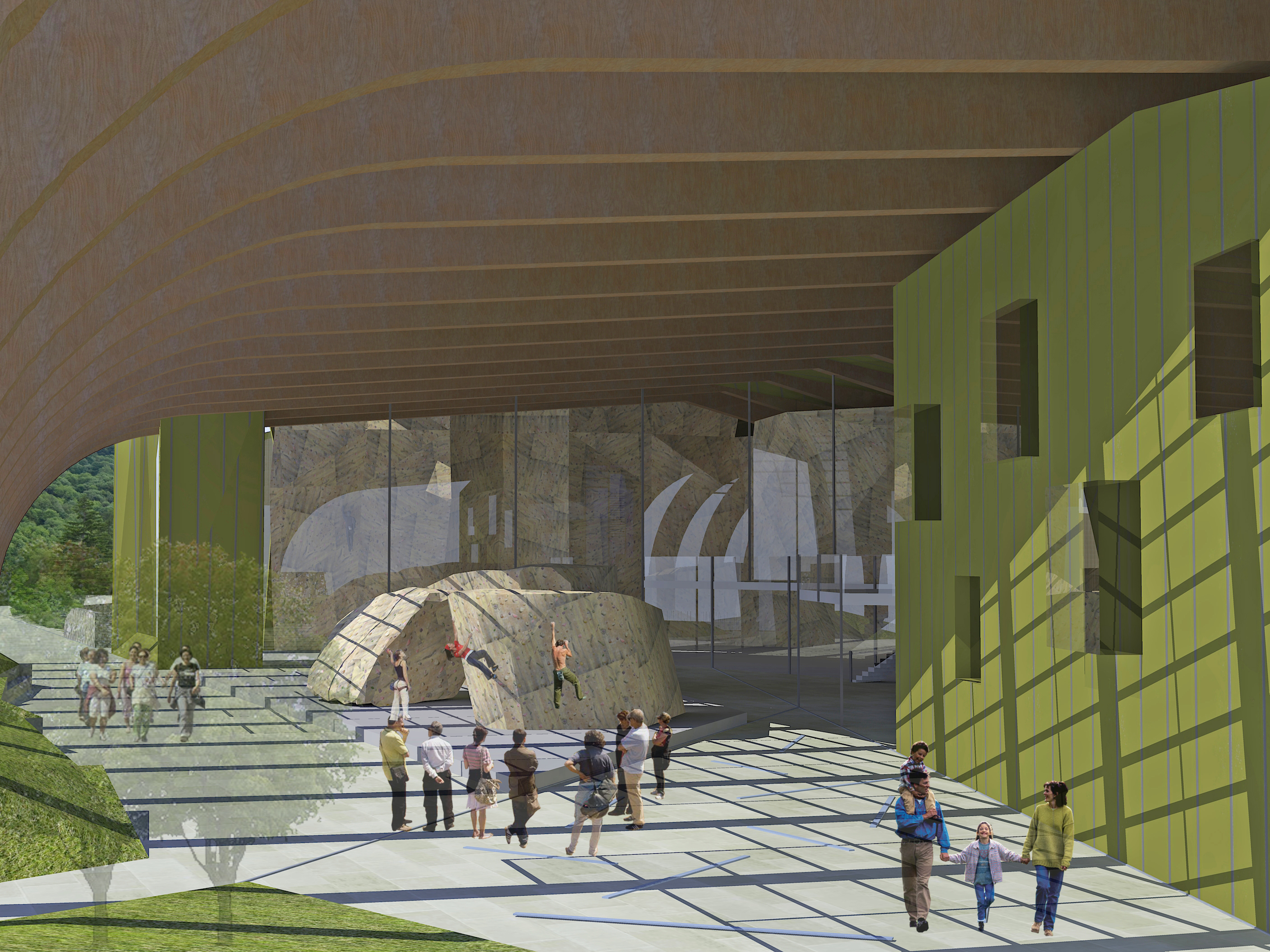 L’ex palaghiaccio, persa la sua ragion d’essere, offre le dimensioni del suo spazio per un radicale cambio di funzione: ci si propone dunque di costruire dentro, sopraelevare, costruire sotto, interpretando le altezze e le dimensioni della sua griglia strutturale.