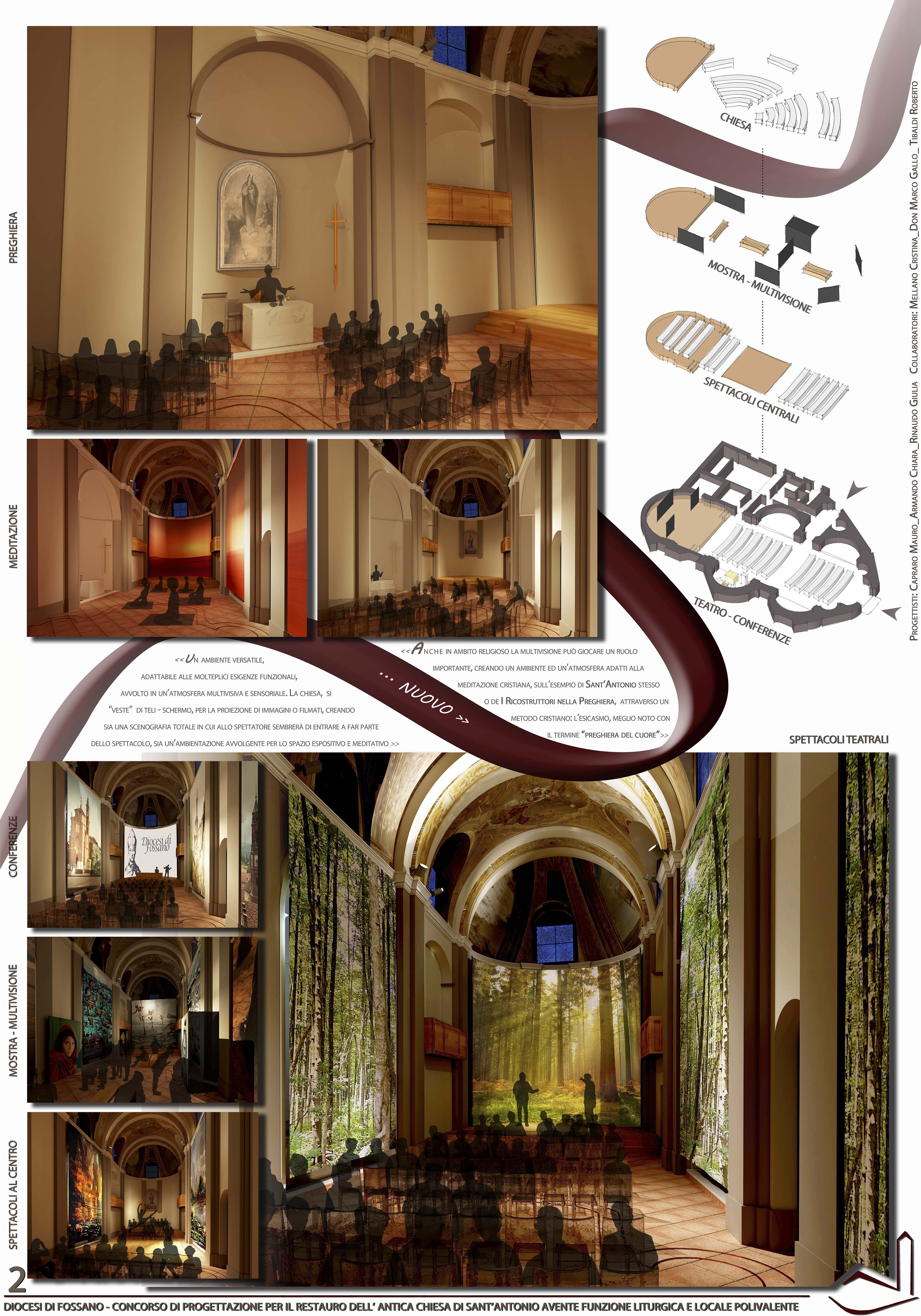 La risposta al concorso di progettazione del progetto preliminare per restauro dell’antica chiesa di Sant’Antonio in Fossano avente funzione liturgica e locale polivalente.