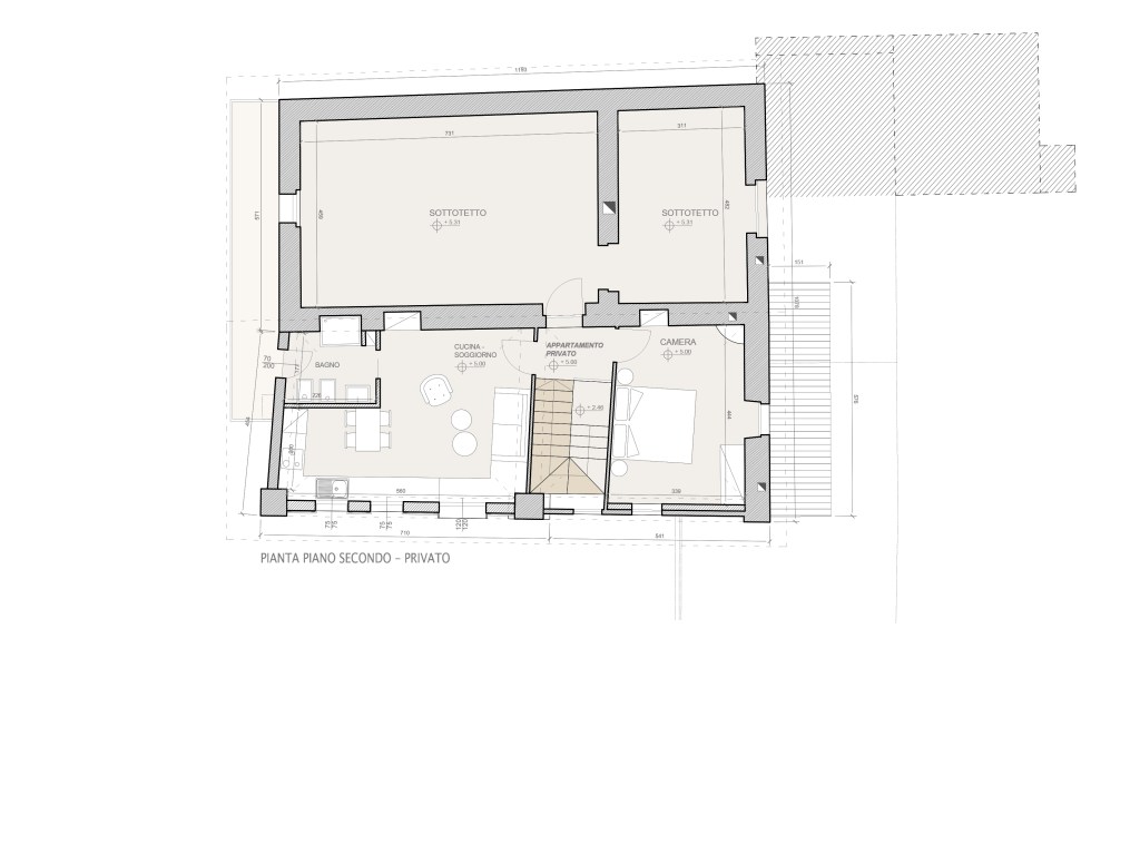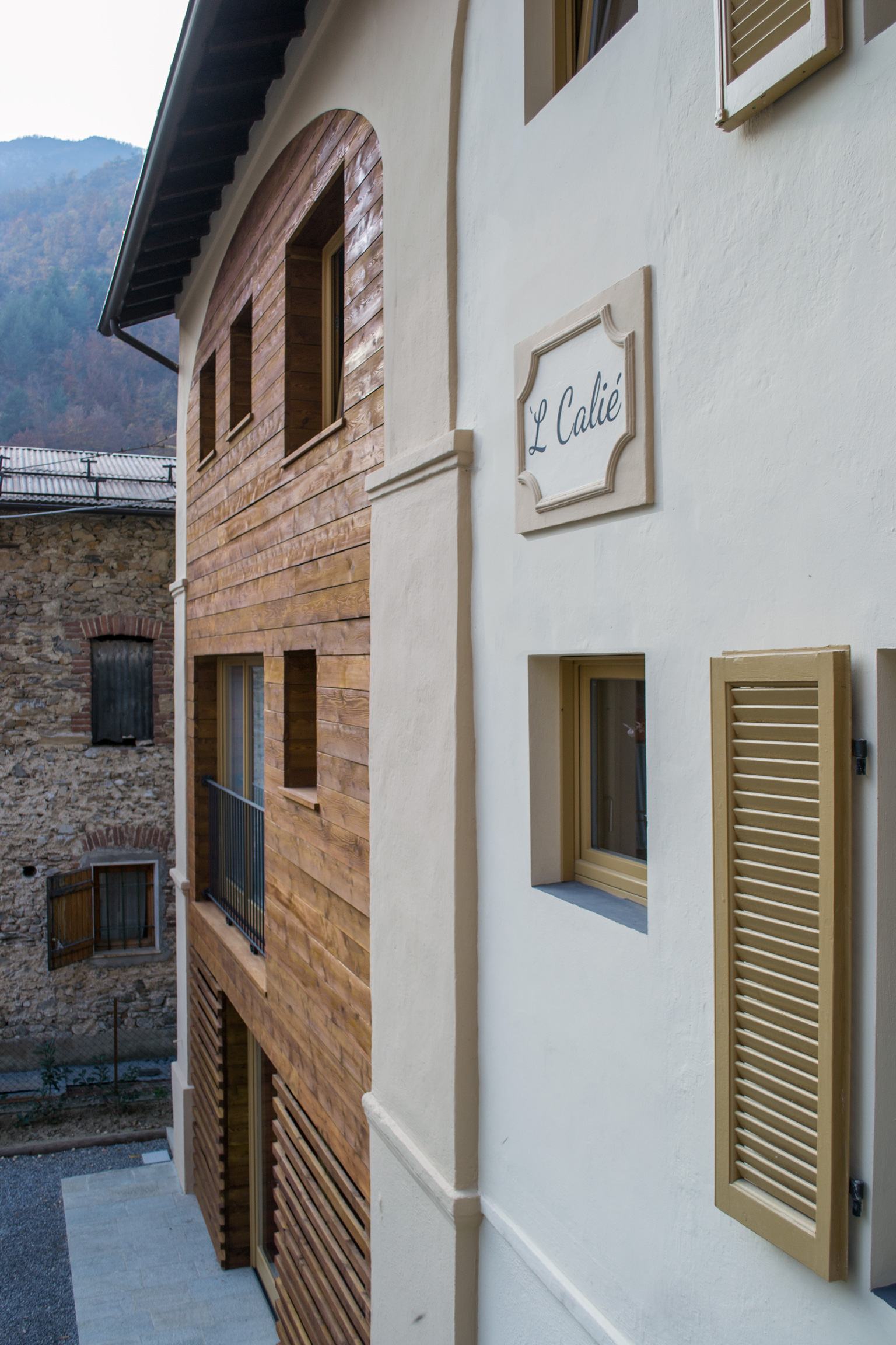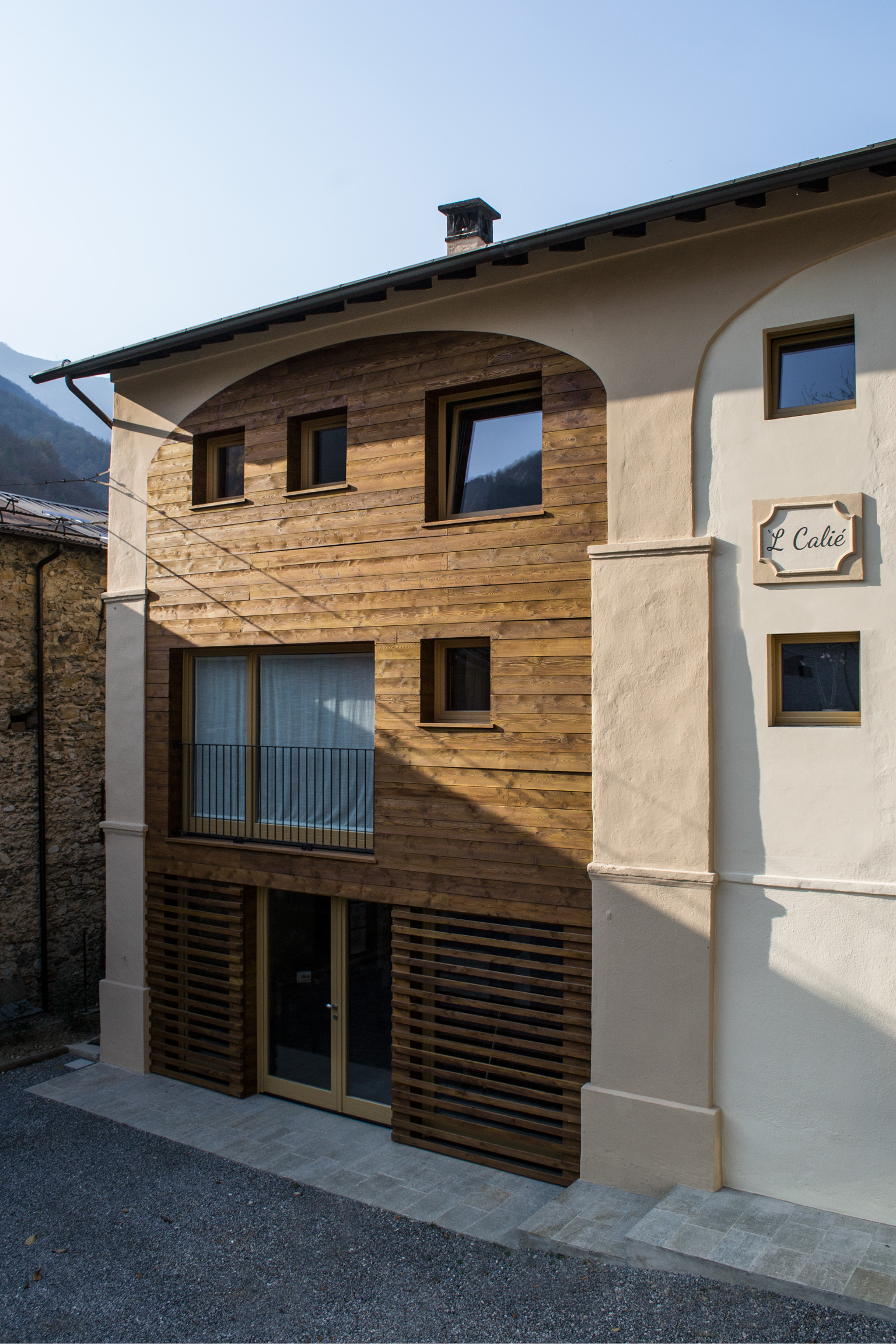 Il nuovo volume, strutturalmente indipendente, vuole caratterizzarsi come il terzo step costruttivo, rispettando dunque un linguaggio compositivo – architettonico contemporaneo, pur utilizzando i materiali della tradizione locale, quali legno e metallo.