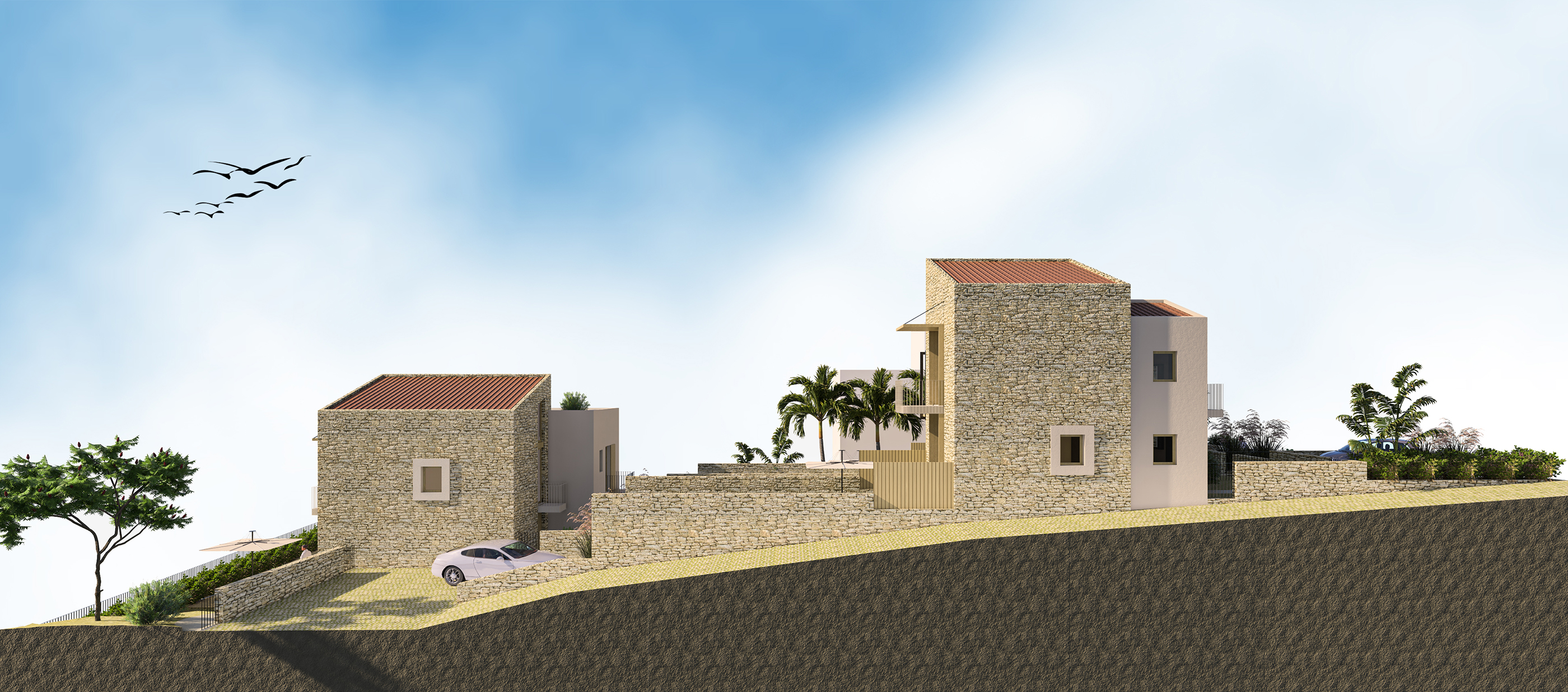 All’interno del tradizionale villaggio di Gallos, vicino alla città di Rethymno, sull’isola di Creta, le quattro ville con piscina privata, seguono l’orografia naturale del terreno e prevedono un uso sia turistico sia residenziale.