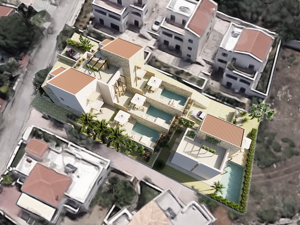 Inside the traditional village of Gallos, near the town of Rethymno, on the island of Crete, four villas with private pools for both touristic and residential use are designed, following the natural orography of the ground.
