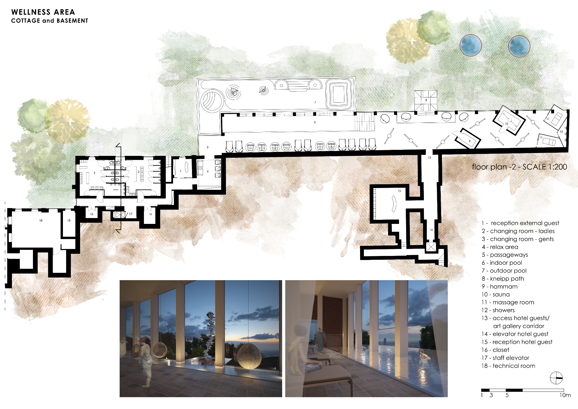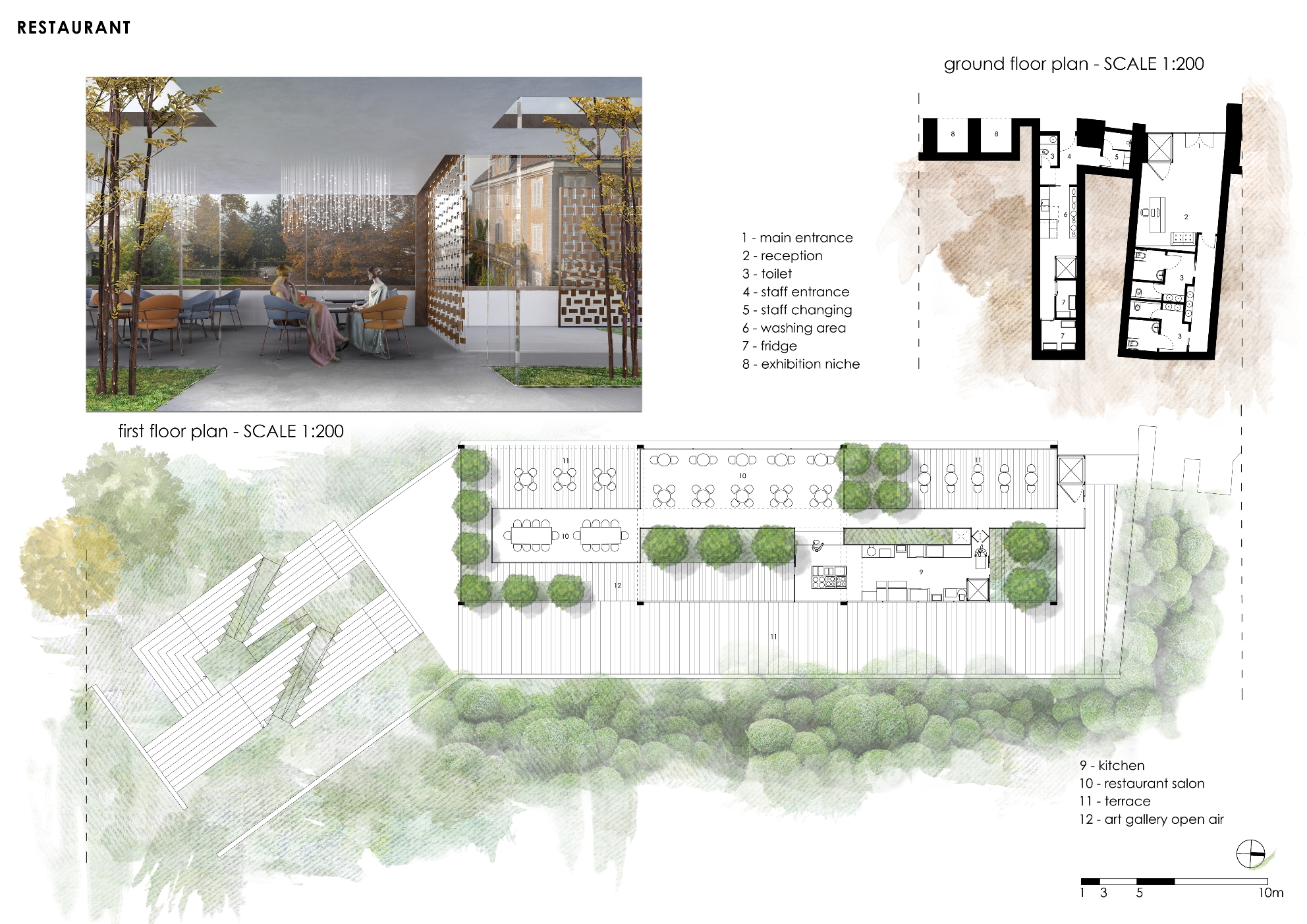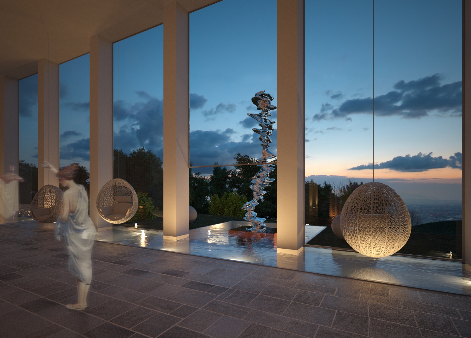 The architecture of the restaurant is designed to be seamless and ethereal: it becomes part of nature in the surrounding environment. The flexibility of the spaces let them transform into an art gallery as well, either to show the bond that exists between art and food or to host other forms of art.