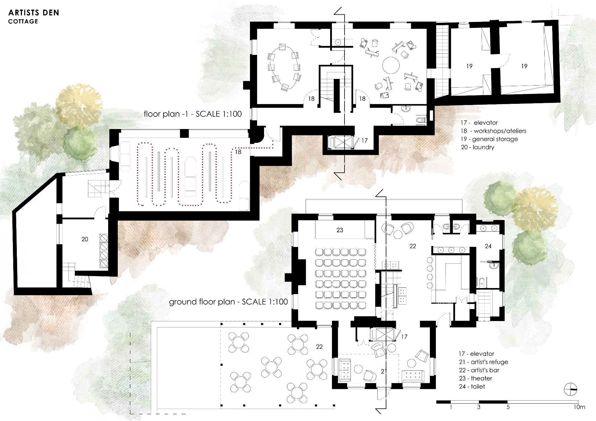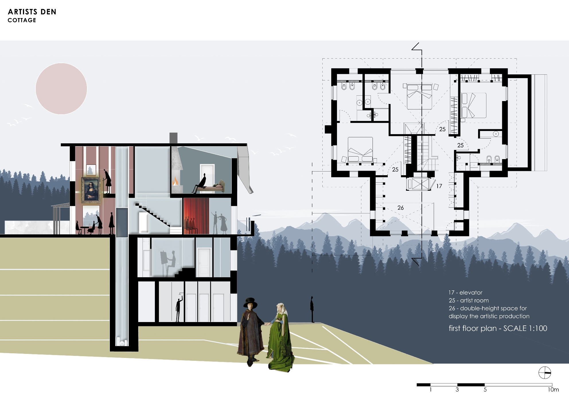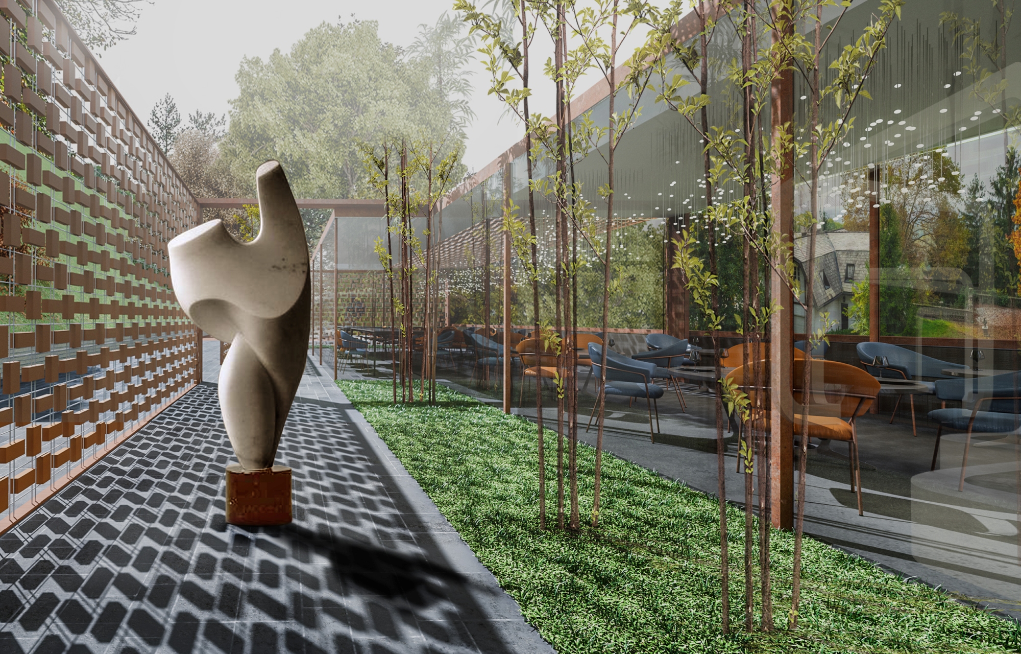 The architecture of the restaurant is designed to be seamless and ethereal: it becomes part of nature in the surrounding environment. The flexibility of the spaces let them transform into an art gallery as well, either to show the bond that exists between art and food or to host other forms of art.