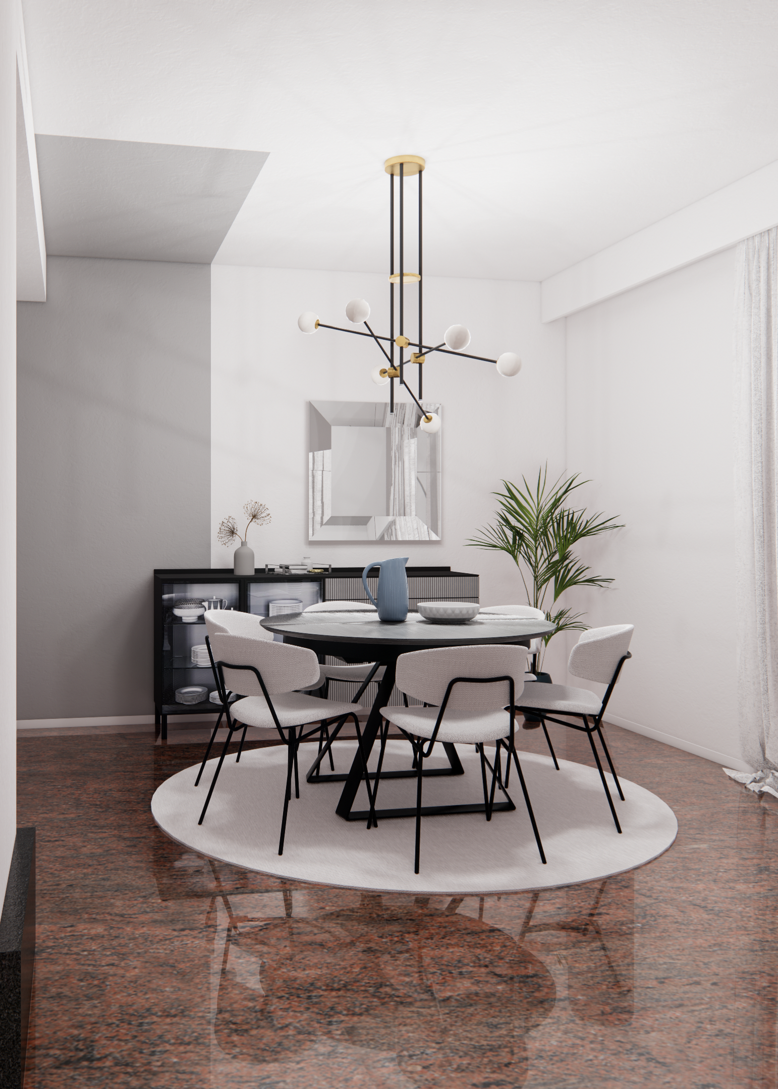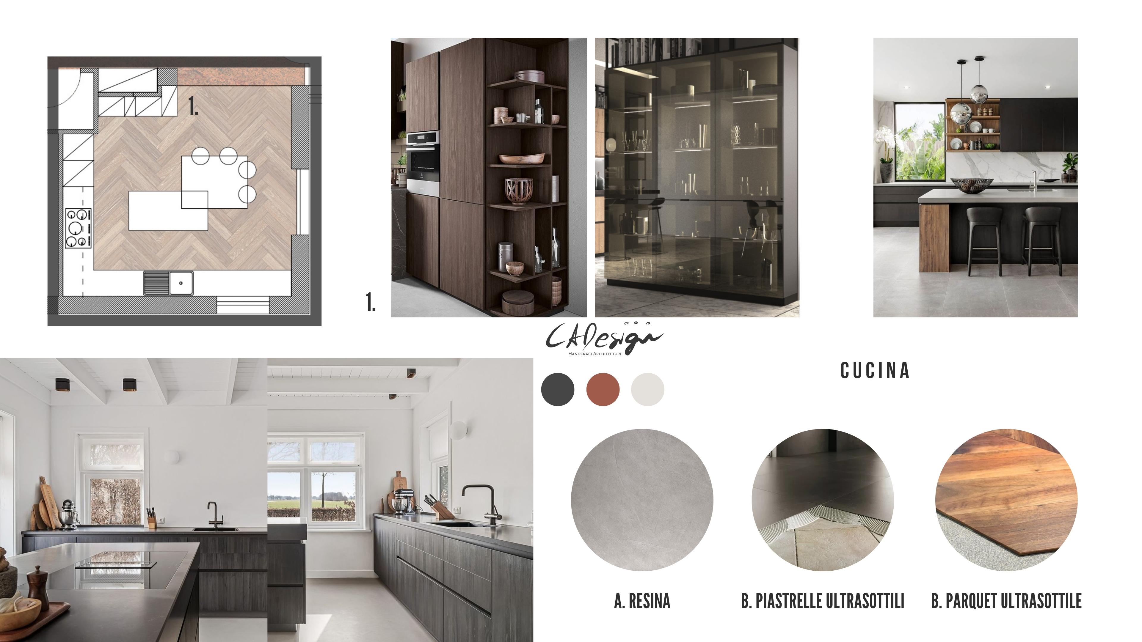 Most of the interventions are therefore concentrated in terms of furnishings and painting, except for the kitchen where a very low thickness (resin) pozzolanic hydraulic mortar floor will be created on the existing one in order to improve the combination with red granite in the living room. without heavy interventions thus preserving the underfloor heating system already up and running throughout the house.