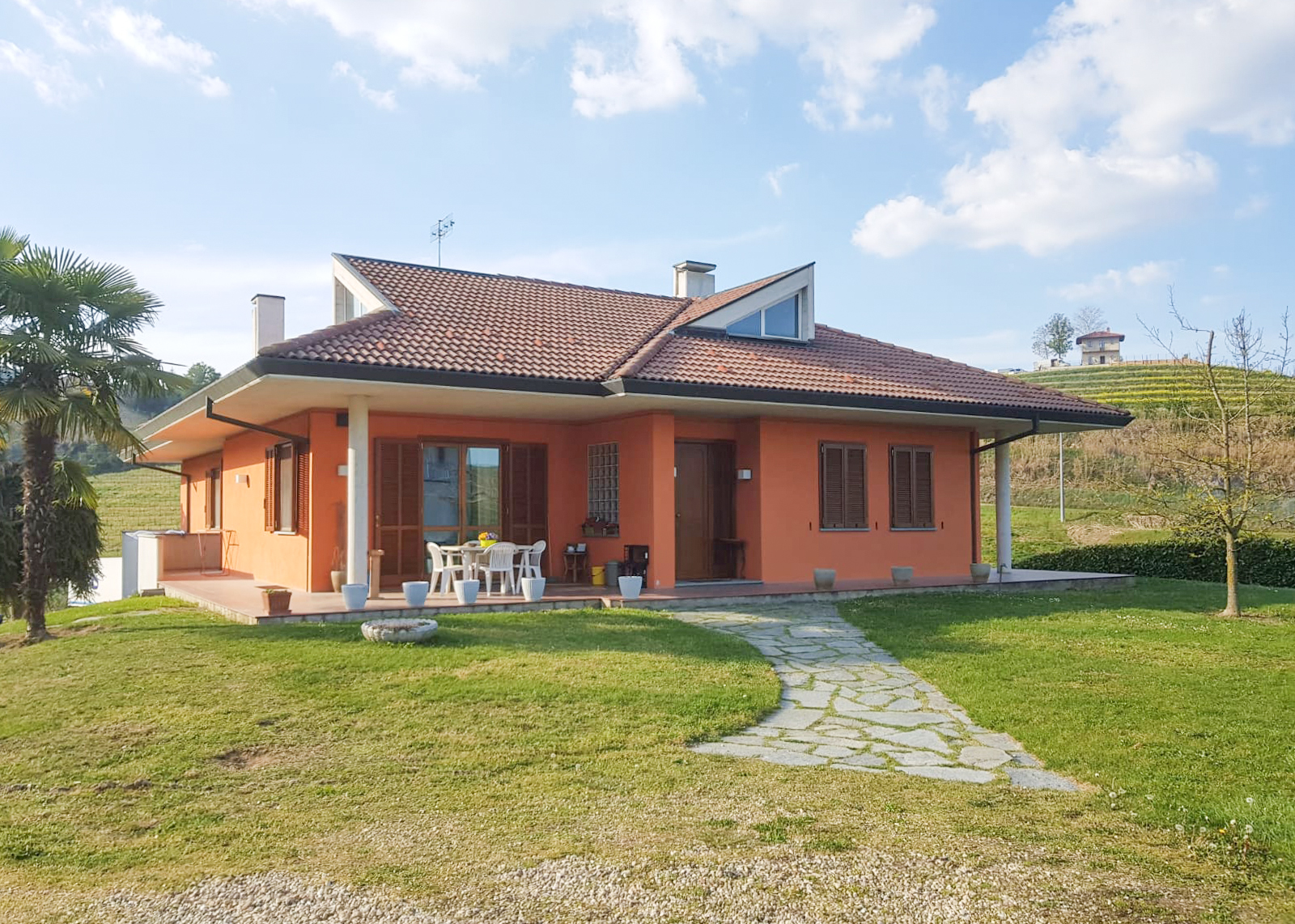 Trattasi di una villa degli anni ’90 nella zona del Roero, sito UNESCO (con le più conosciute Langhe e il Monferrato) dal 2014 per i caratteristici vitigni che ne disegnano il paesaggio.