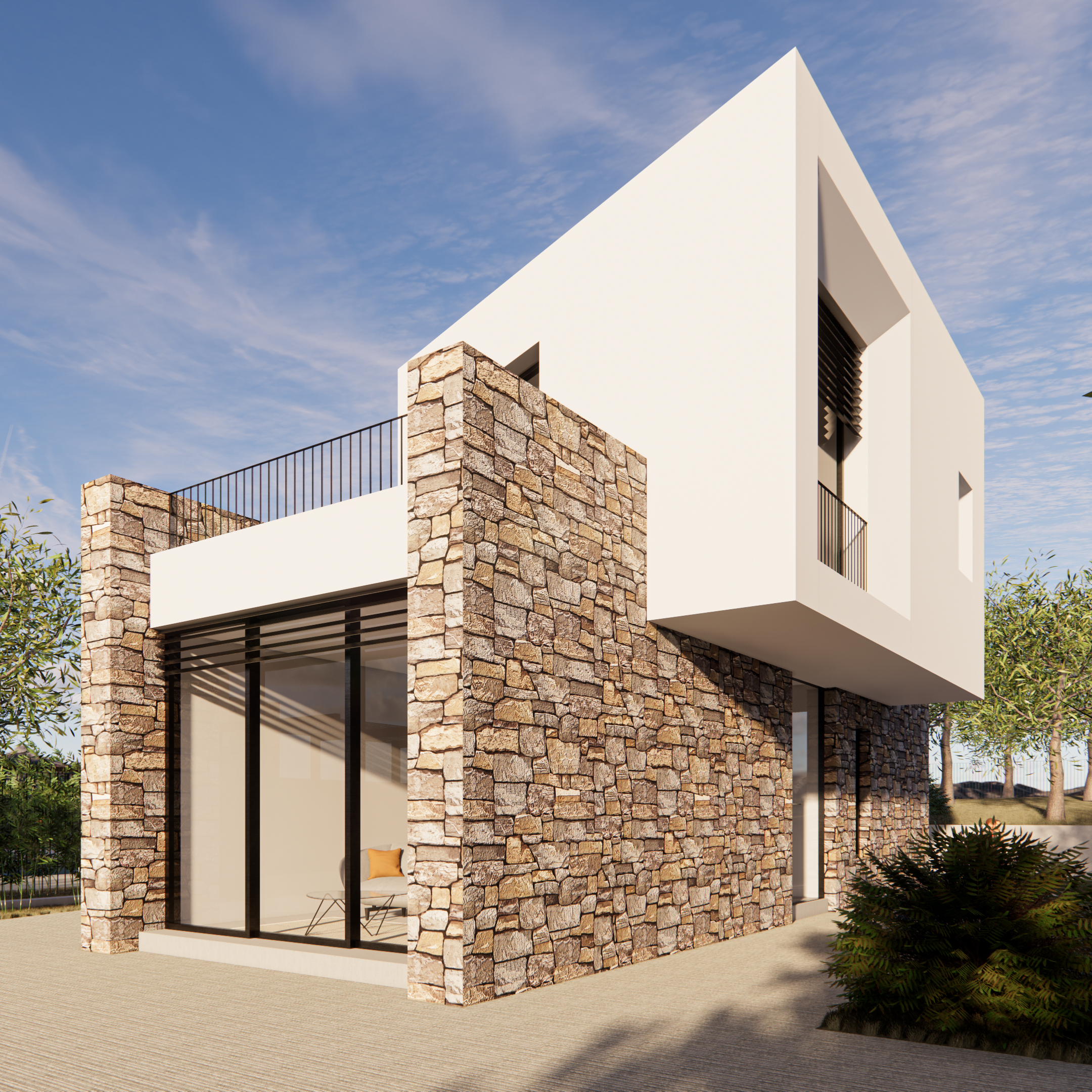 Volumi lineari e semplici forati da grandi aperture che permetteranno agli ospiti di apprezzare il paesaggio circostante, ricordando nelle loro sagome la tipologia delle case cretesi a due piani con terrazzo.