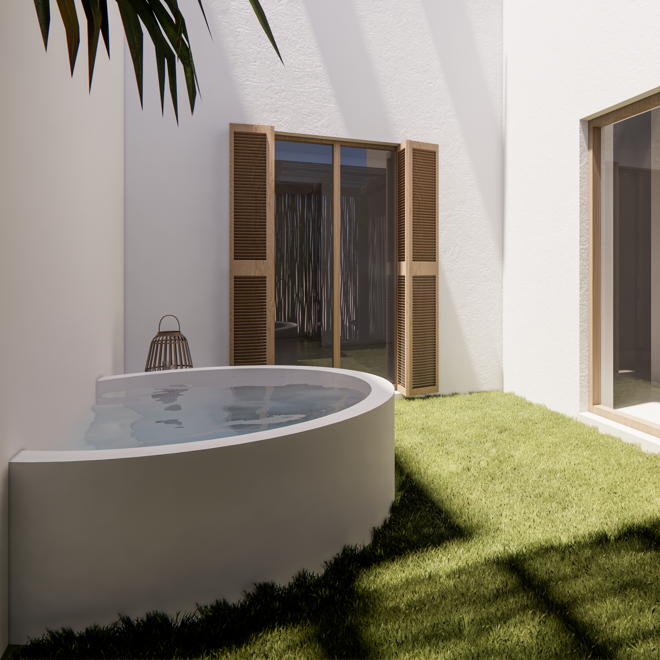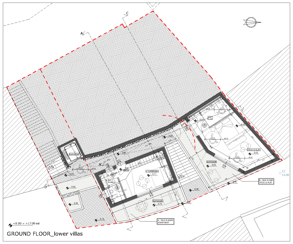 Presenta ora un salto di livello definito da un muretto che verrà mantenuto e diventerà il fulcro del progetto: sui due terrazzamenti verranno collocate 4 abitazioni ad uso turistico e residenziale interconnesse tra loro.