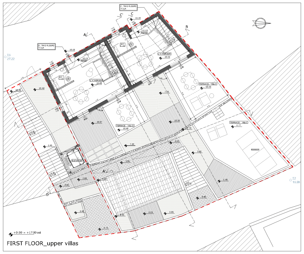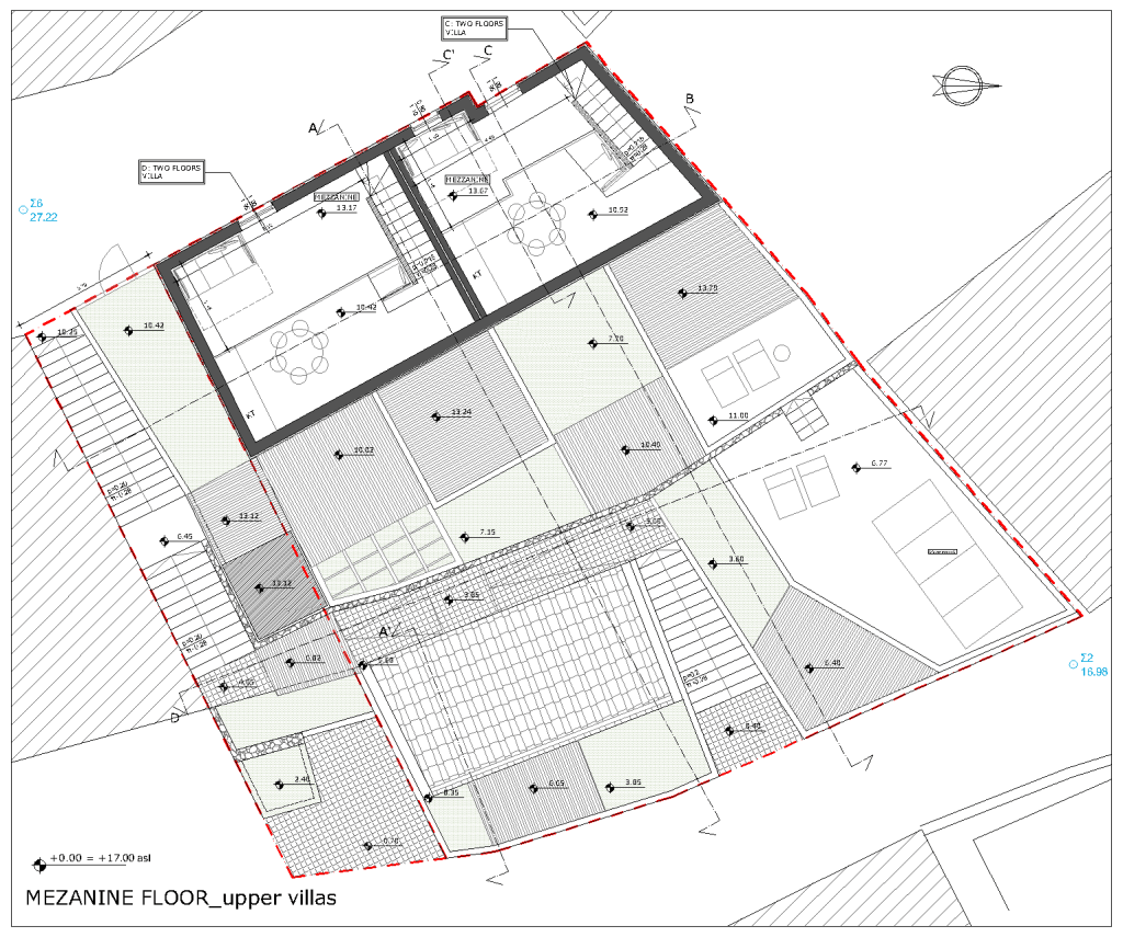 It presents now 2 height levels that are going to be kept and became the fulcrum of the project: 4 houses for touristic and residential use interconnected each other are going to be placed on those.