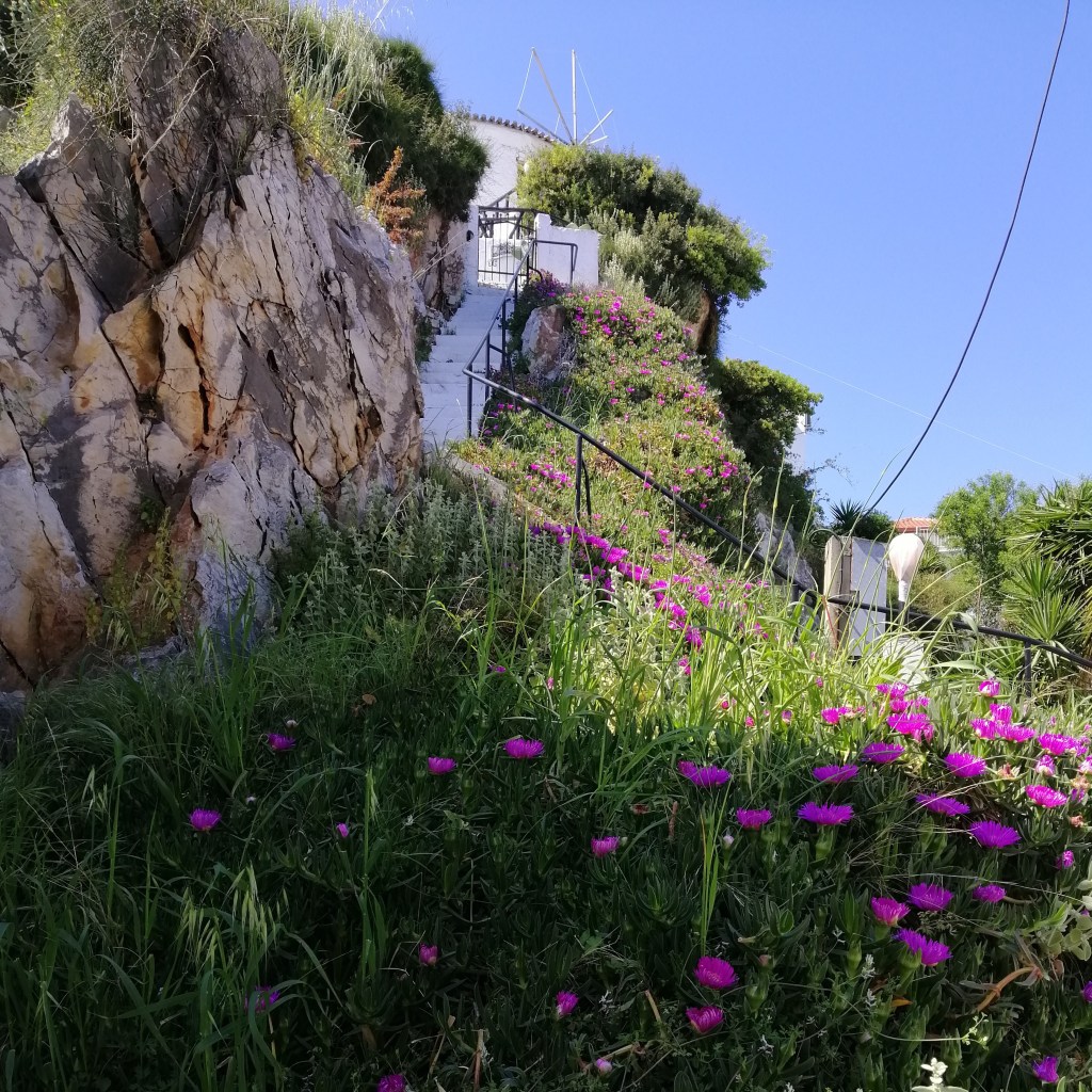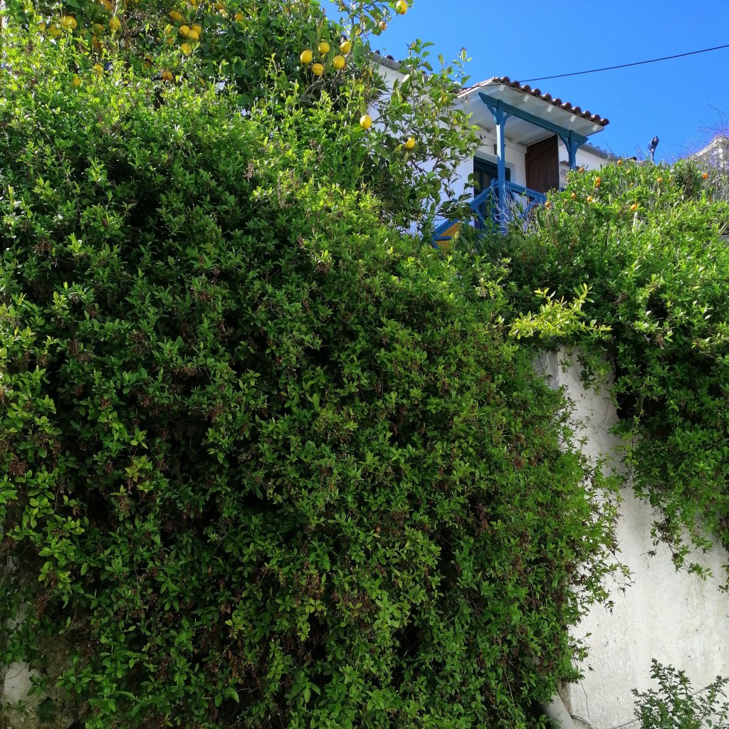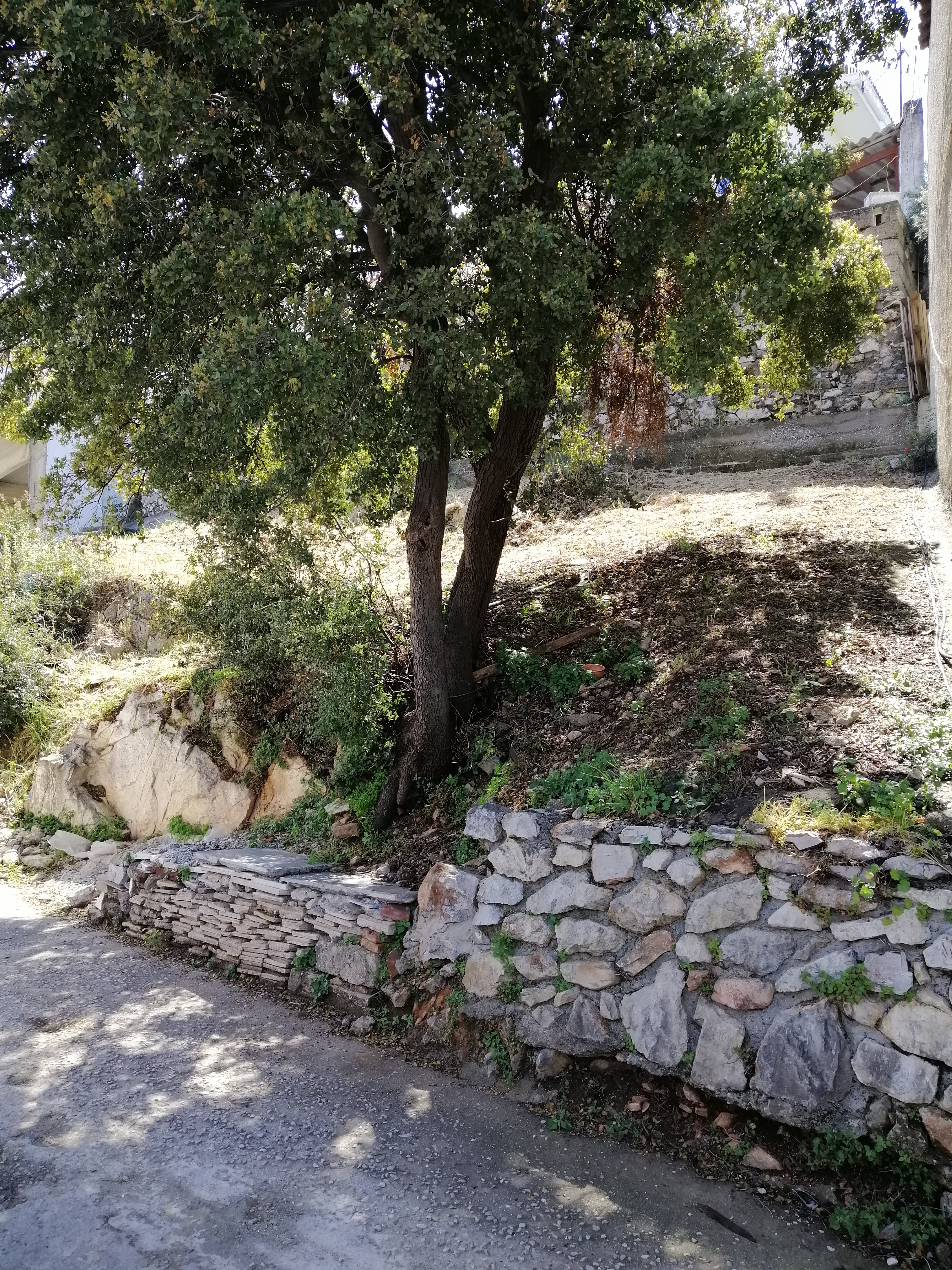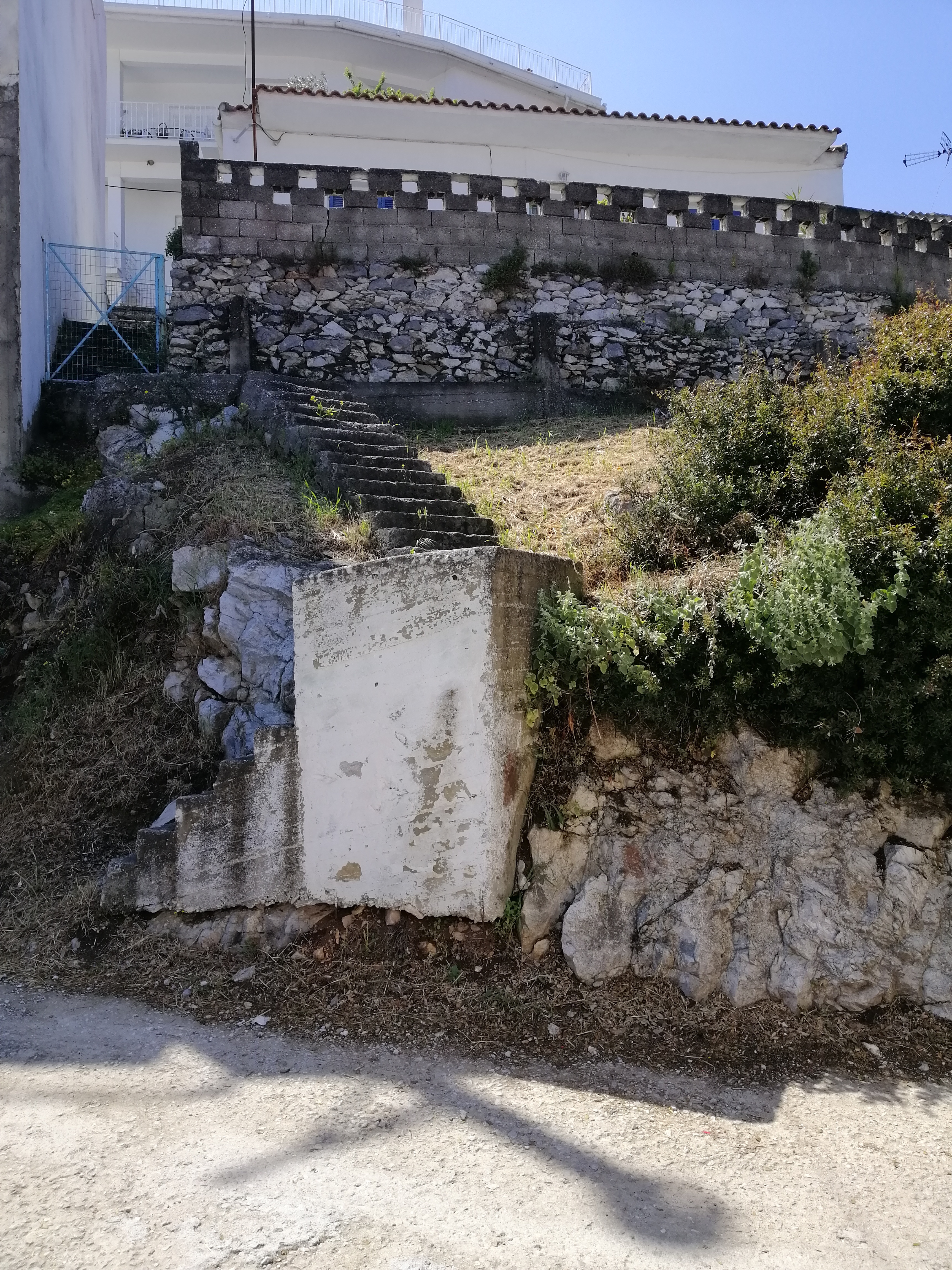 The property is located on the North- East side of the town of Skiathos. A land with a strong inclination bordered by two streets, On the East and on the West side, above and below.