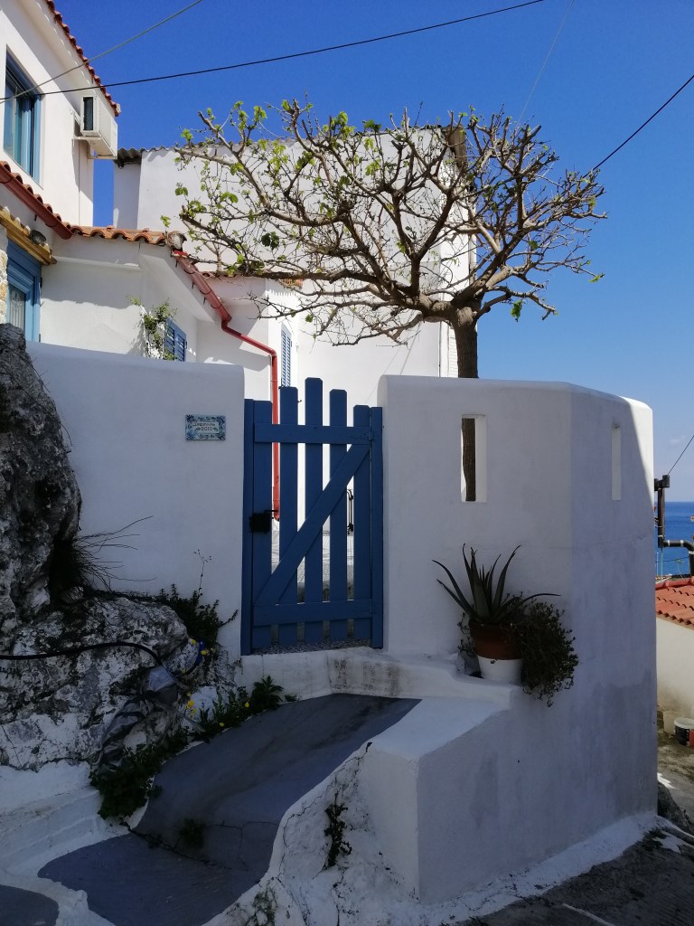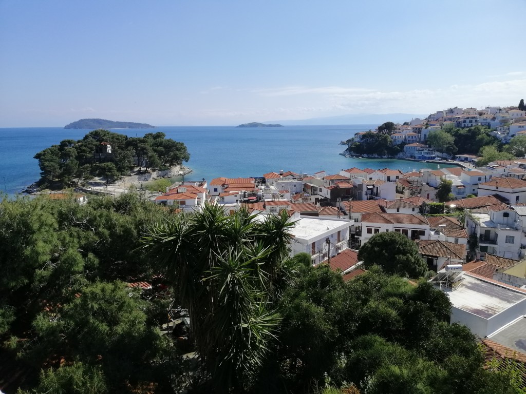 La proprietà si trova sul lato nordorientale del centro abitato di Skiathos, capoluogo dell’omonima isola greca. Un terreno dalla forte pendenza delimitato da due strade, a Est ed a Ovest, sopra e sotto.
