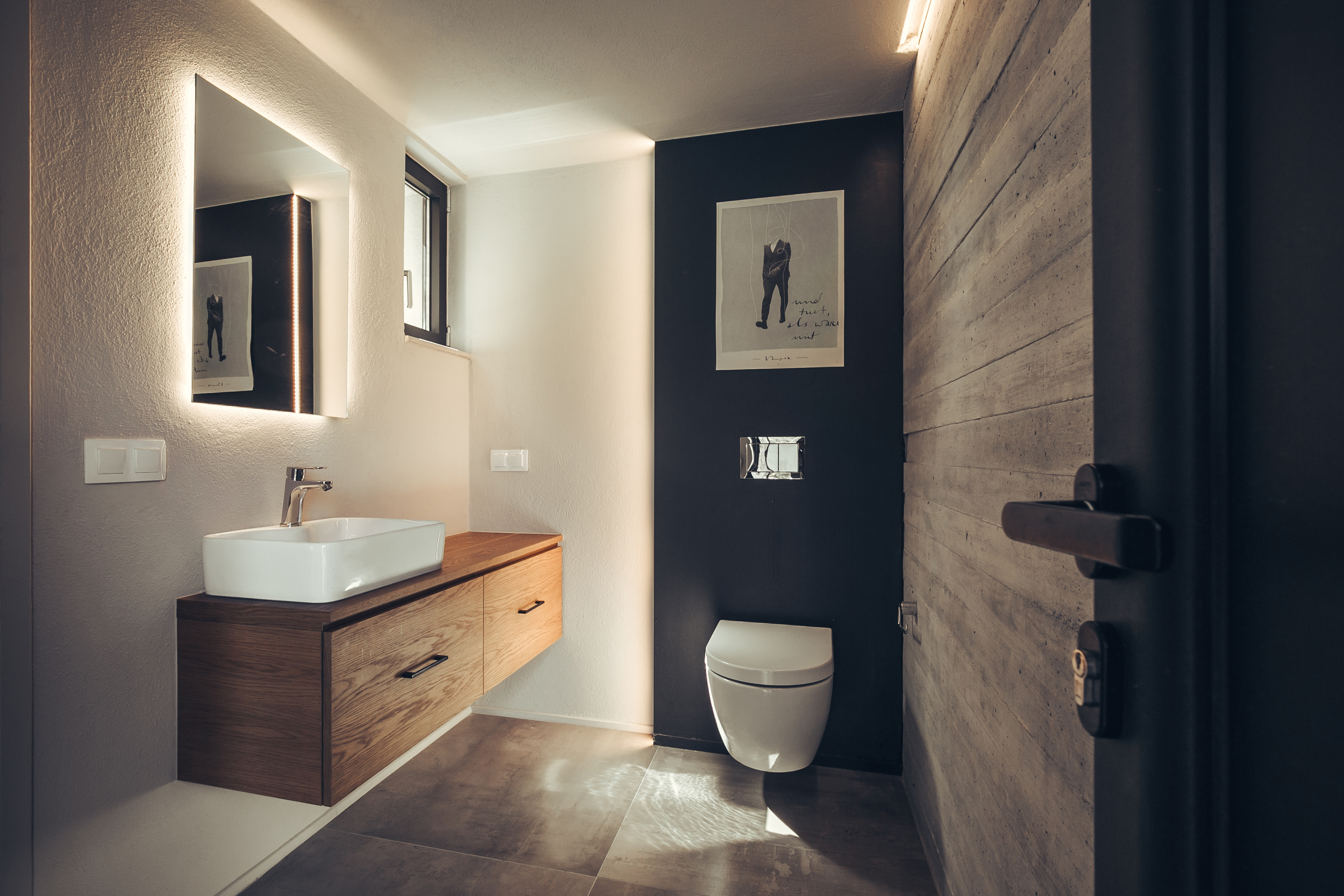 Le forme essenziali e i materiali – pietra, legno, metallo e intonaco – pur declinati con un linguaggio contemporaneo echeggiano l’architettura tradizionale.