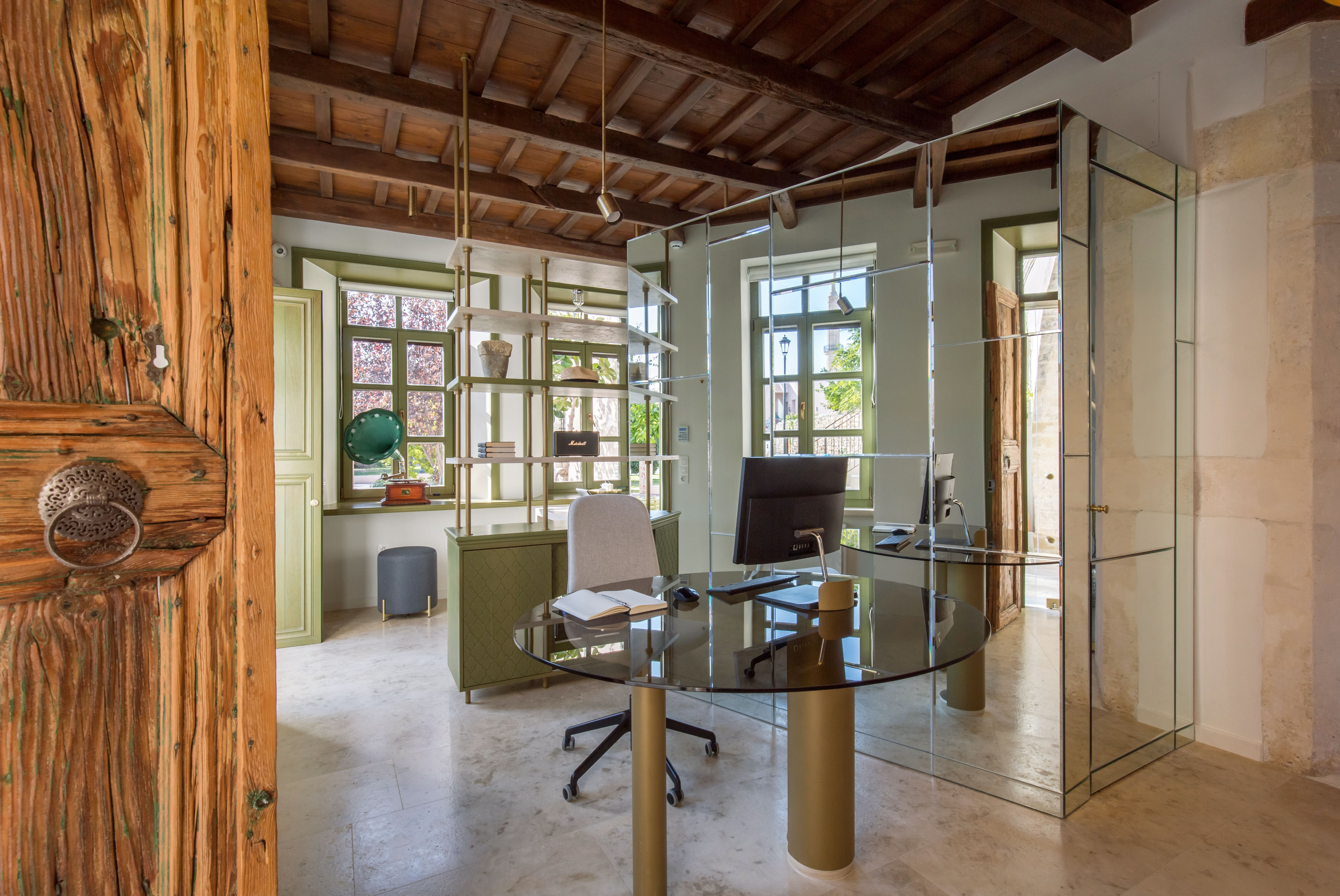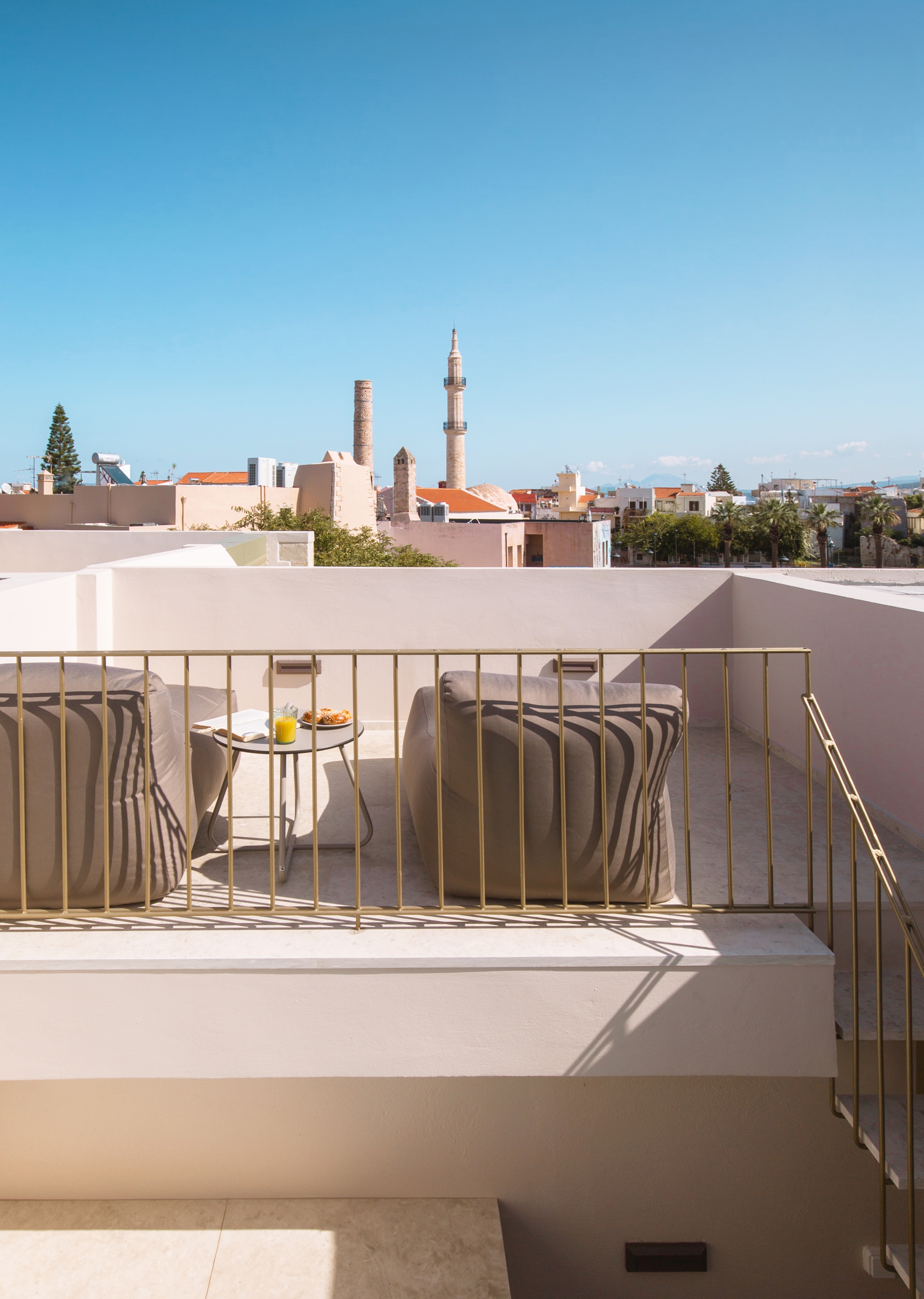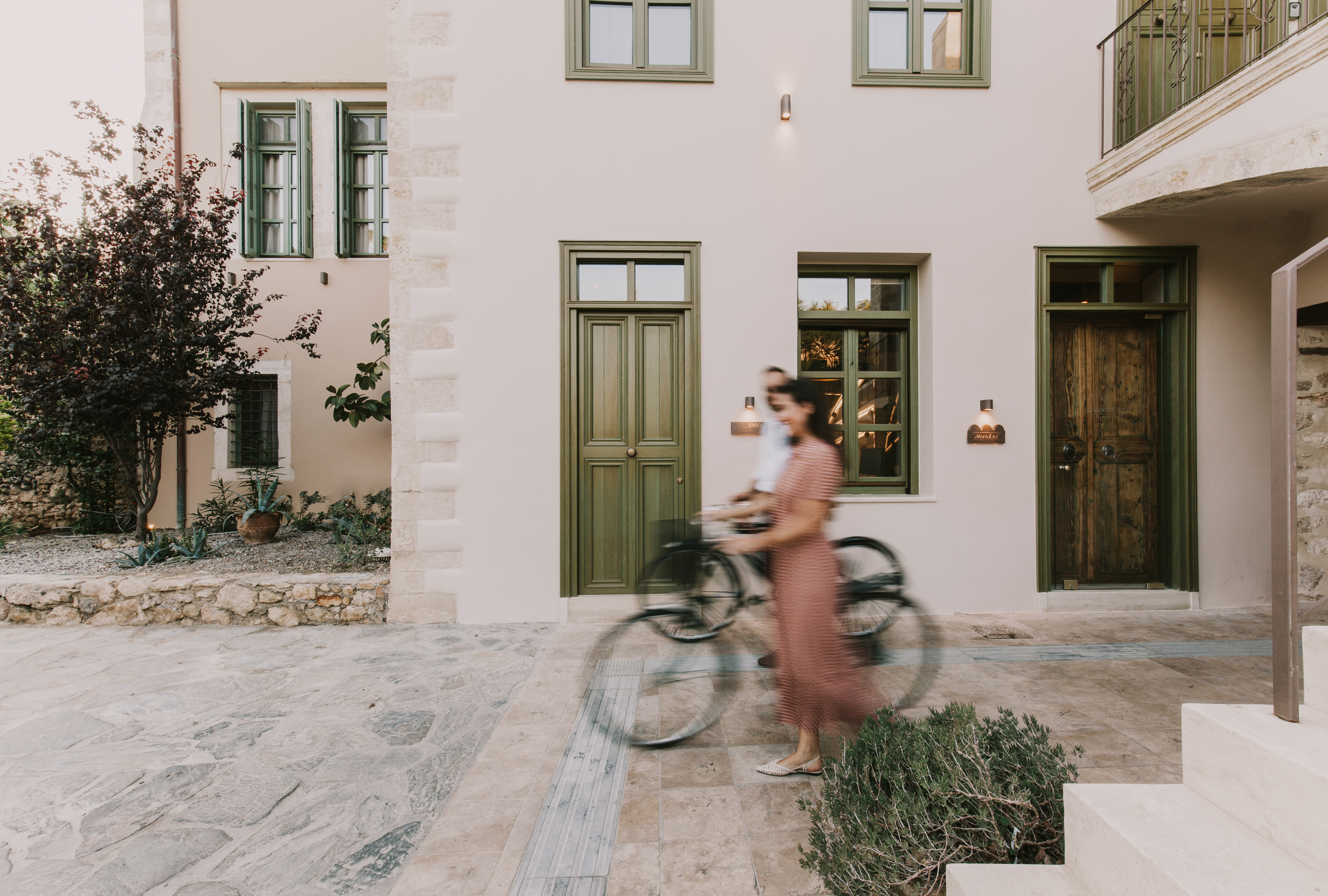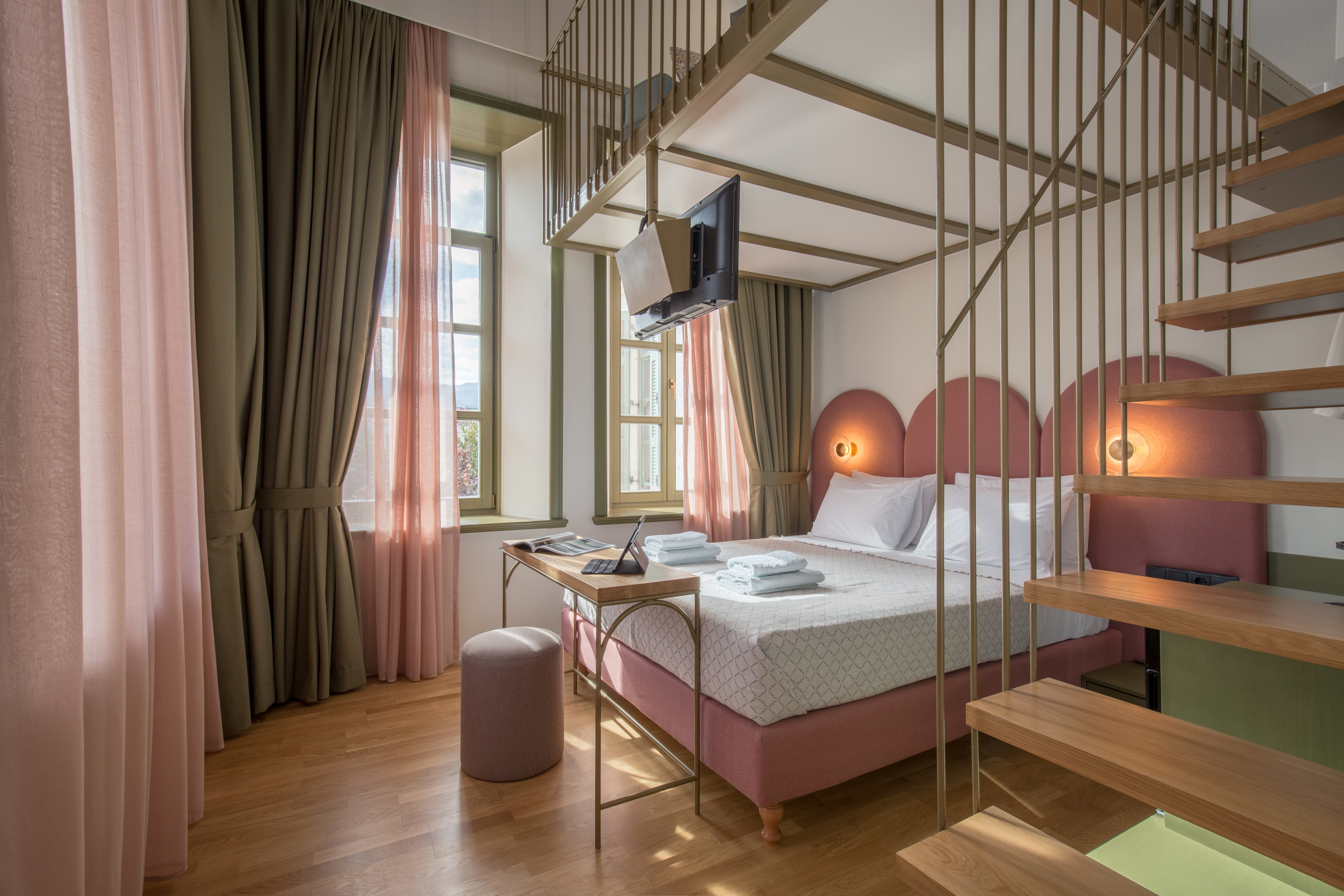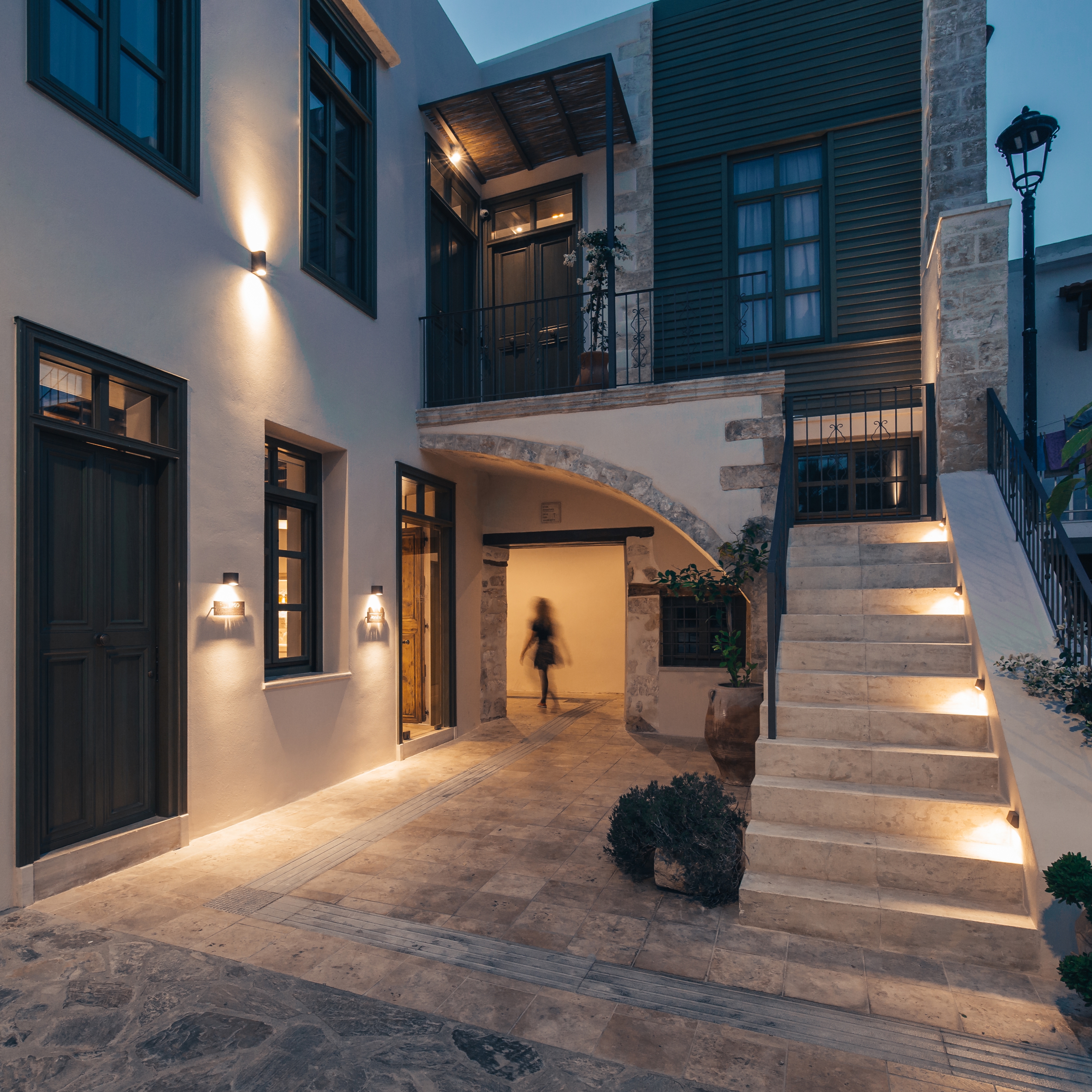 Un recupero attento e curato nei dettagli, restaurando e ripristinando gli elementi architettonici deteriorati, per trasformare l’antico edificio ottomano, già veneziano, in un raffinato boutique hotel, unito al precedente attraverso la riapertura nella reception di una porta che era stata tamponata in un passato non molto lontano, consentendone dunque l’accesso sia dalla Piazza – Platia Mikrasiaton – che dalla Via di Lastenous.