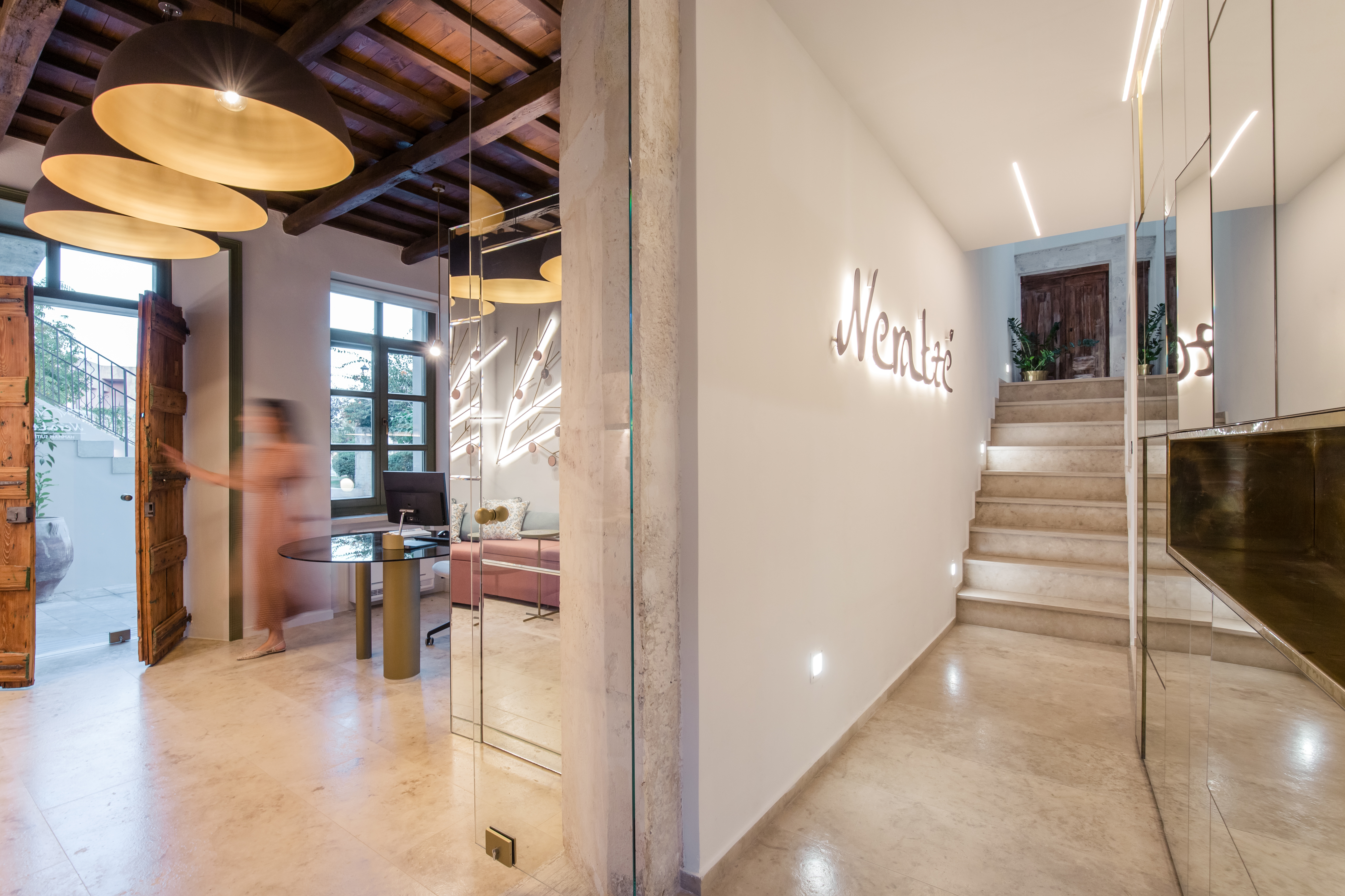 A careful renovation with attention to detail, restoring the deteriorated architectural elements, to transform the ancient Ottoman building, already Venetian, into a refined boutique hotel, joined to the previous one through the reopening of a door in the reception that had been buffered into a past not very far. Thus allowing access both from the square – Platia Mikrasiaton – and from the Via di Lastenous.