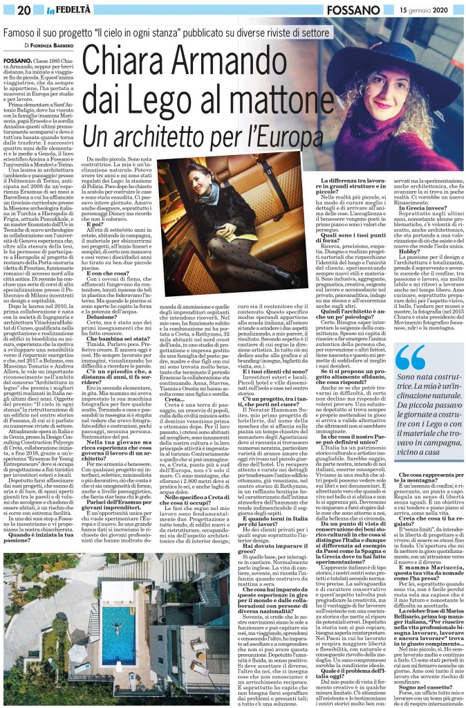 - CUNEOCronaca – “Il cielo in ogni stanza” da Fossano spicca al premio nazionale di architettura