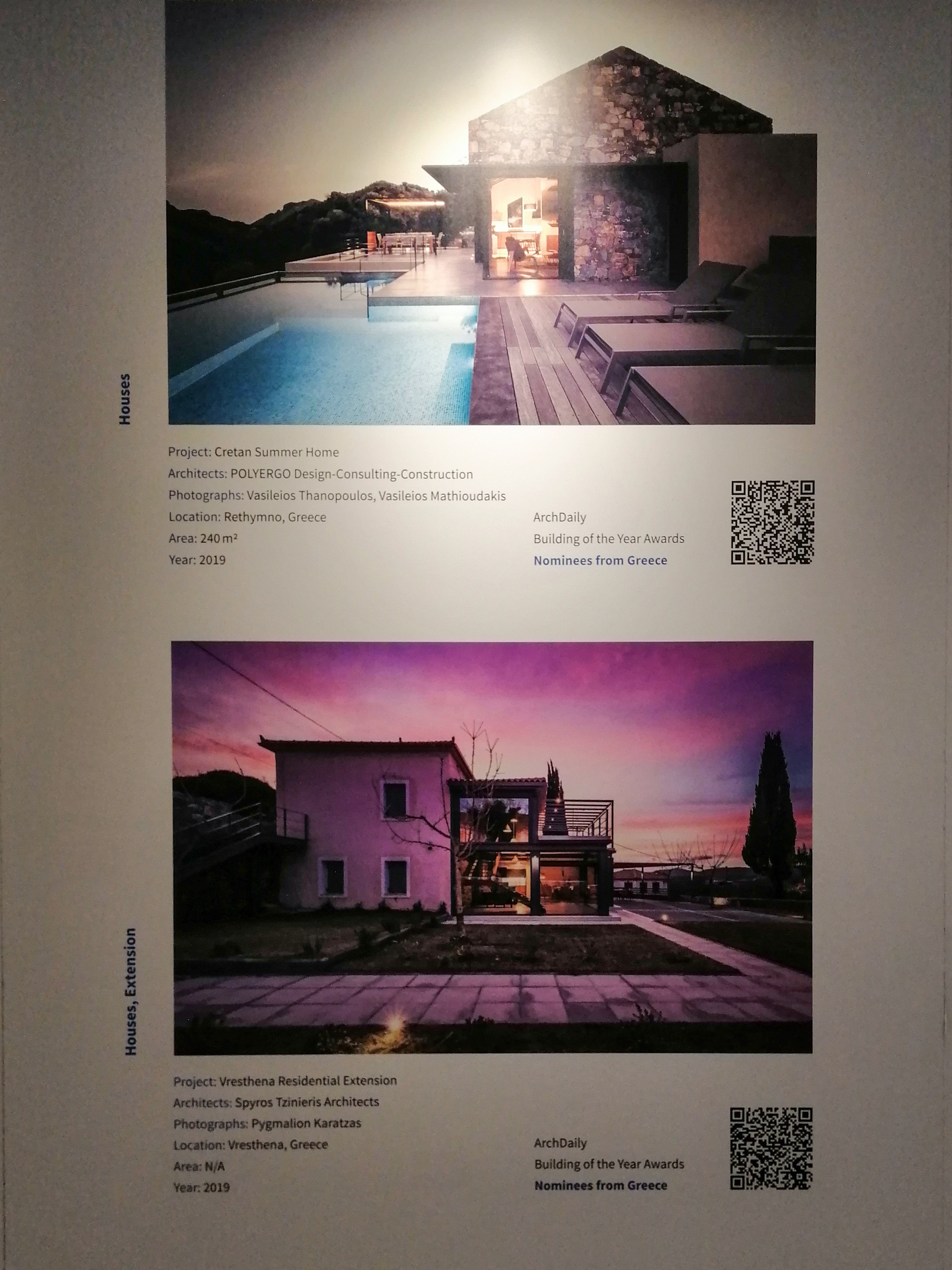 In this special installation, among other 25 projects, CRETAN SUMMER HOME has been presented as one of the Nominees from Greece.